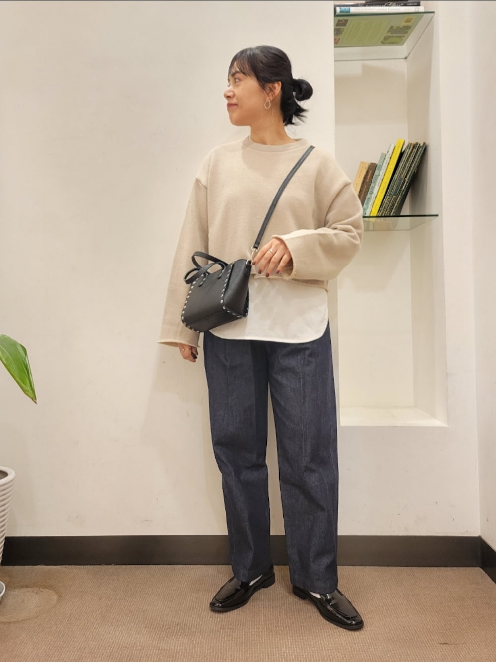 袖口や裾は切りっぱなしでカールするラフなデザインがこなれ感を演出し、短く設定した着丈もトレンド感のある印象に。