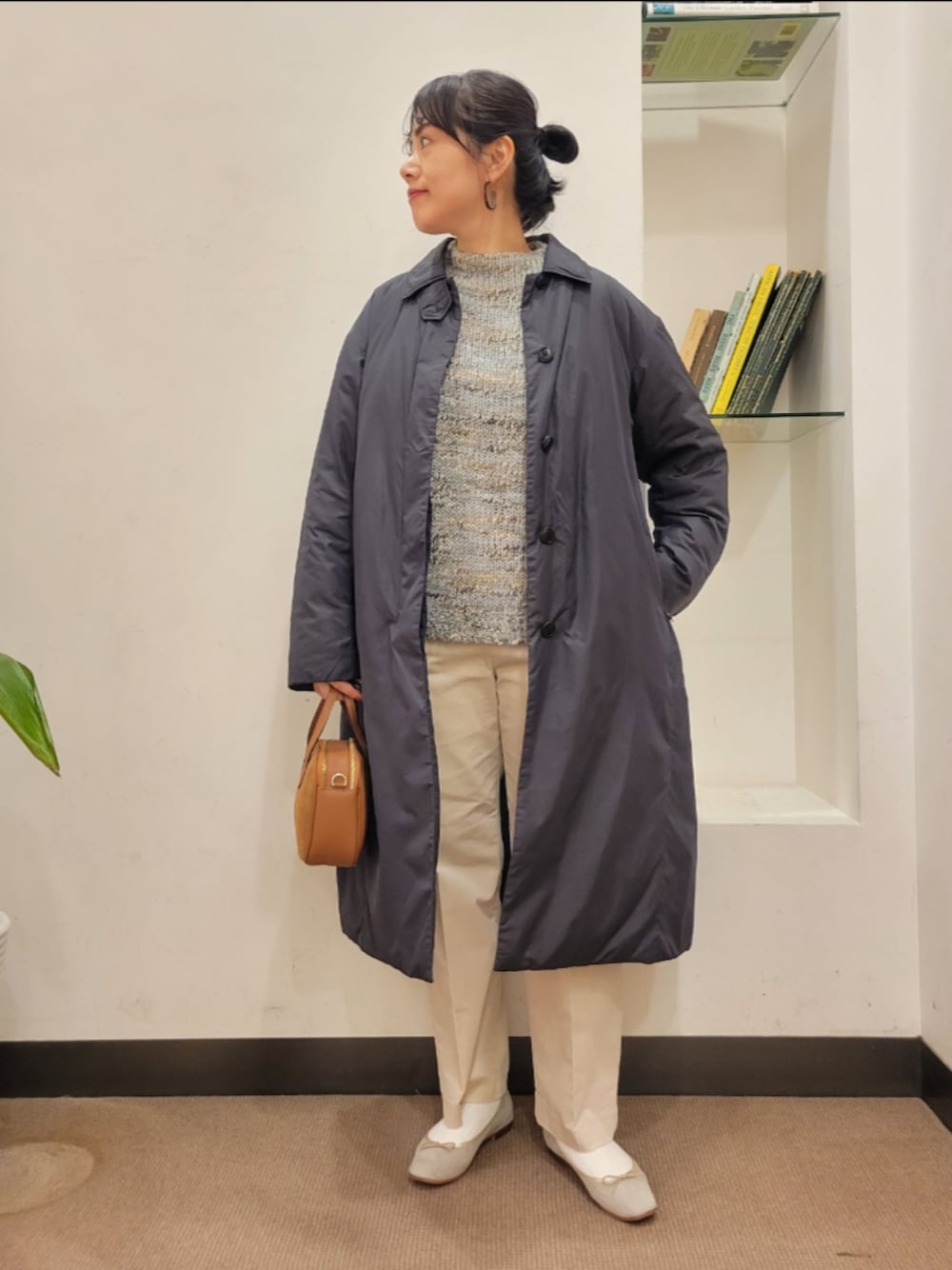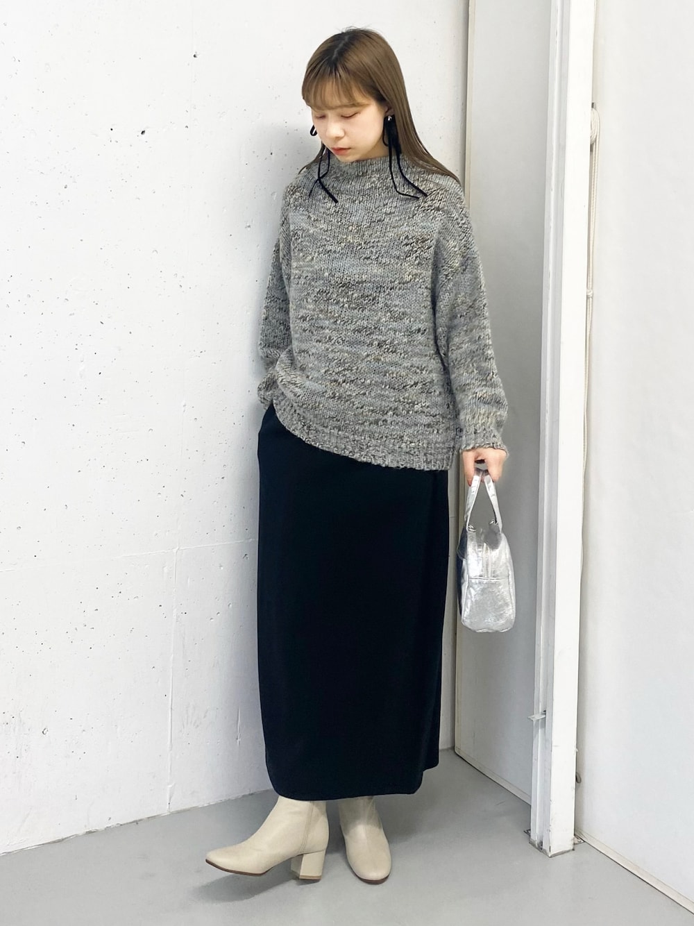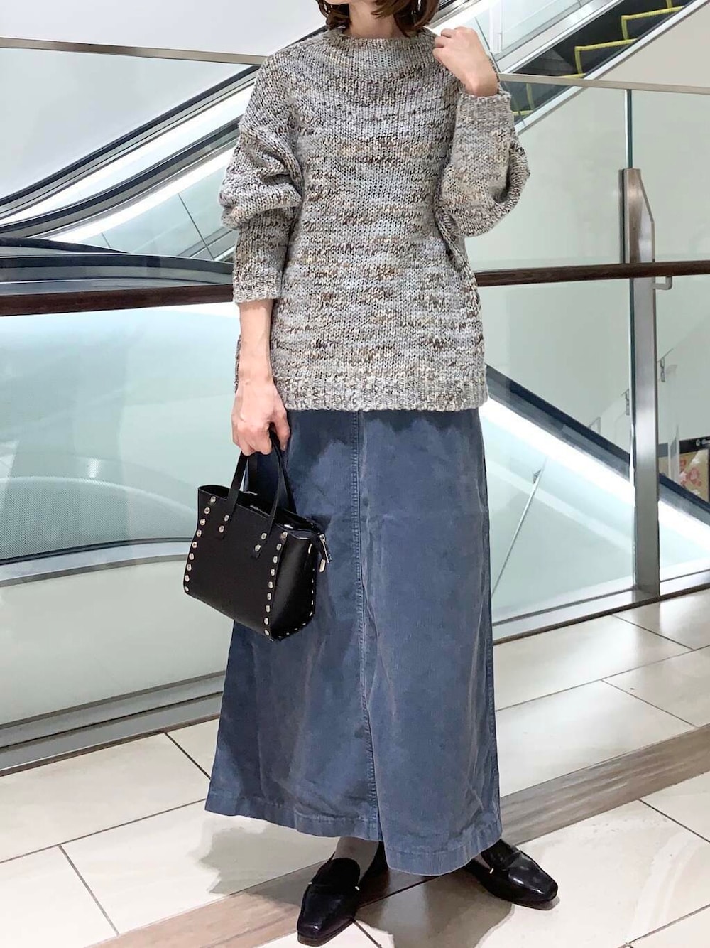 ミドルゲージなのでアウターの中にも重ねやすく、一枚でも単調な印象にならずこなれ感のある雰囲気を出せるアイテムです。