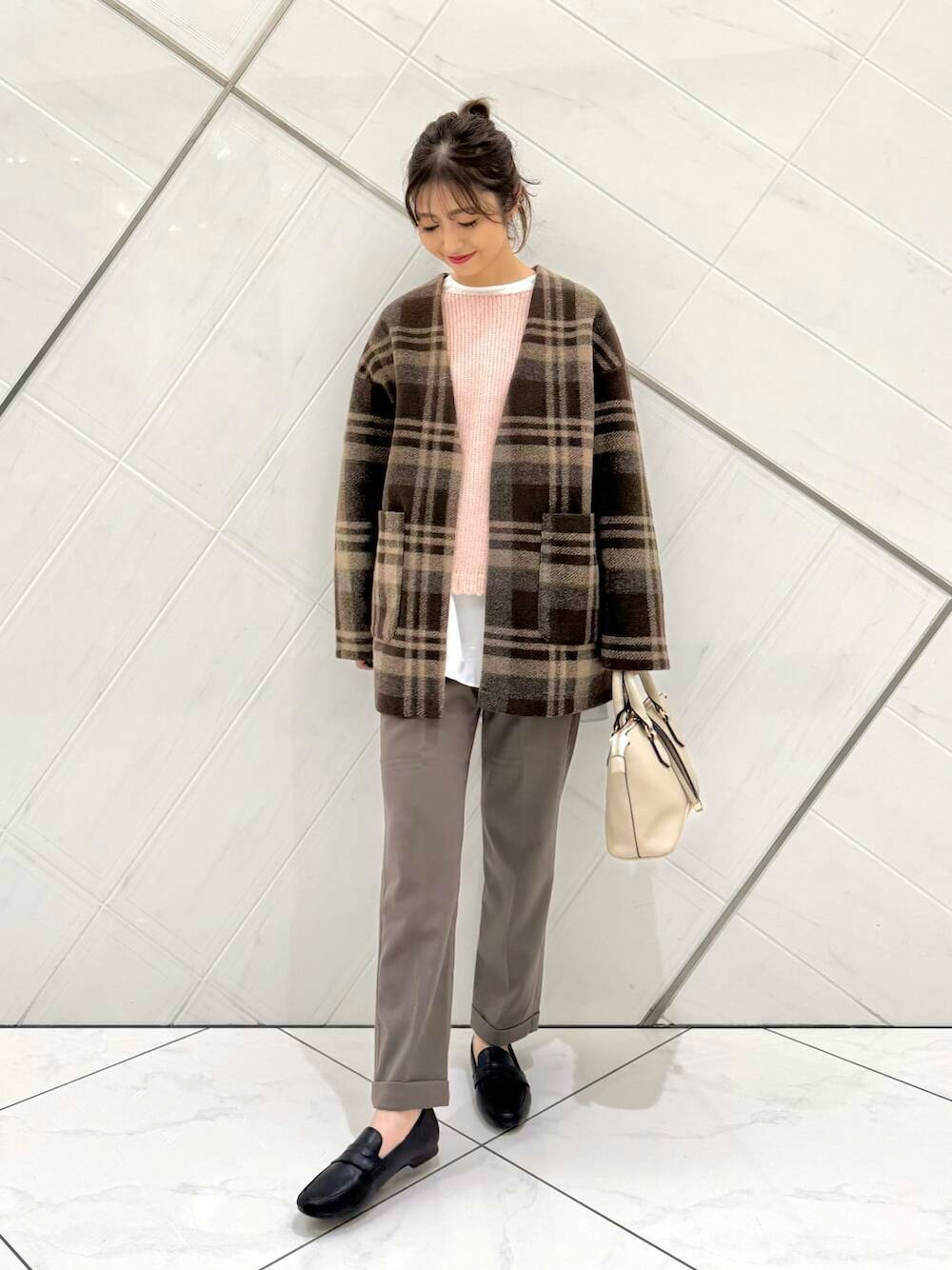 淡いカラー2色を採用し、重くなりがちな冬のコーディネートに軽さを与えてくれます。