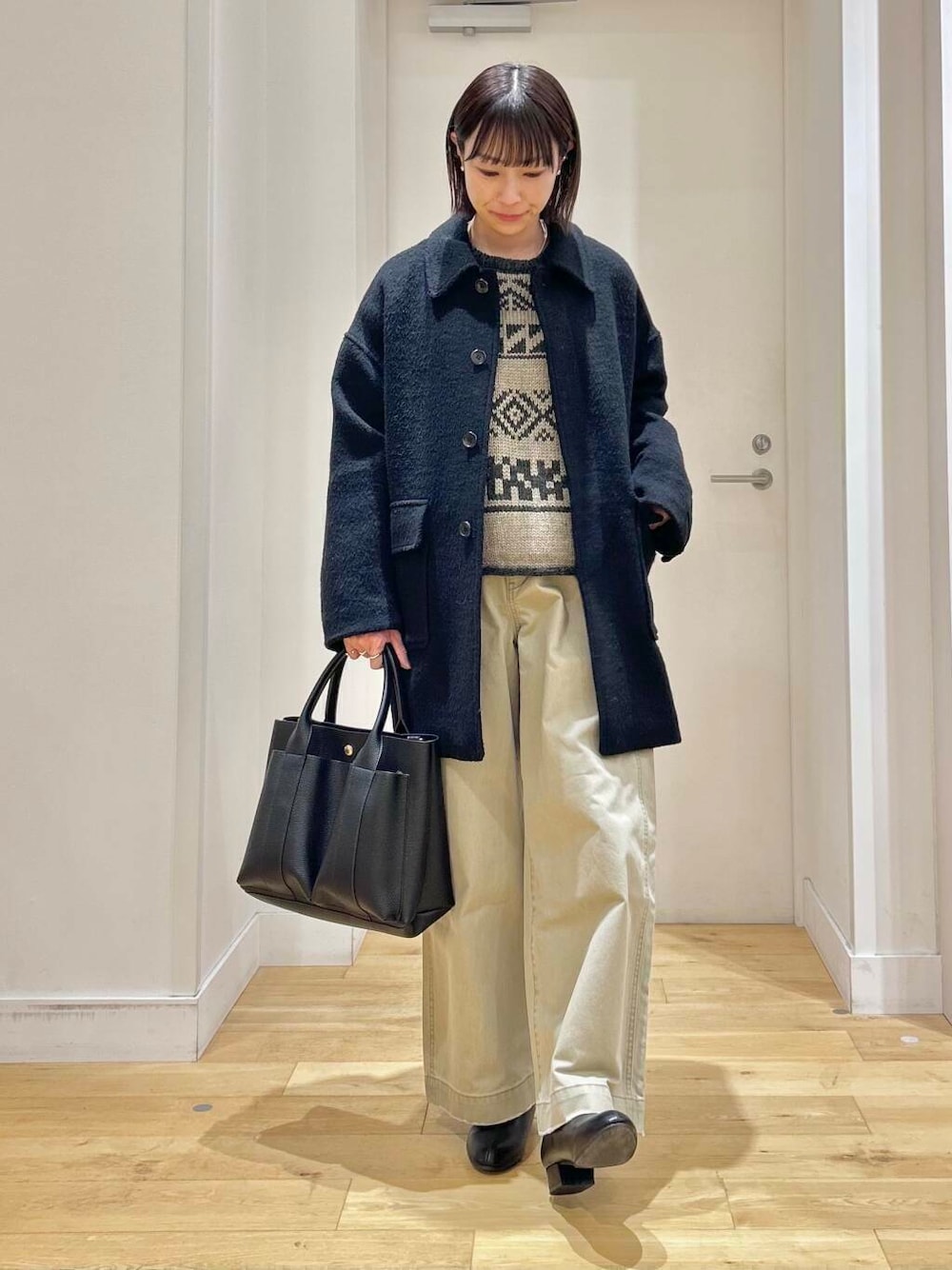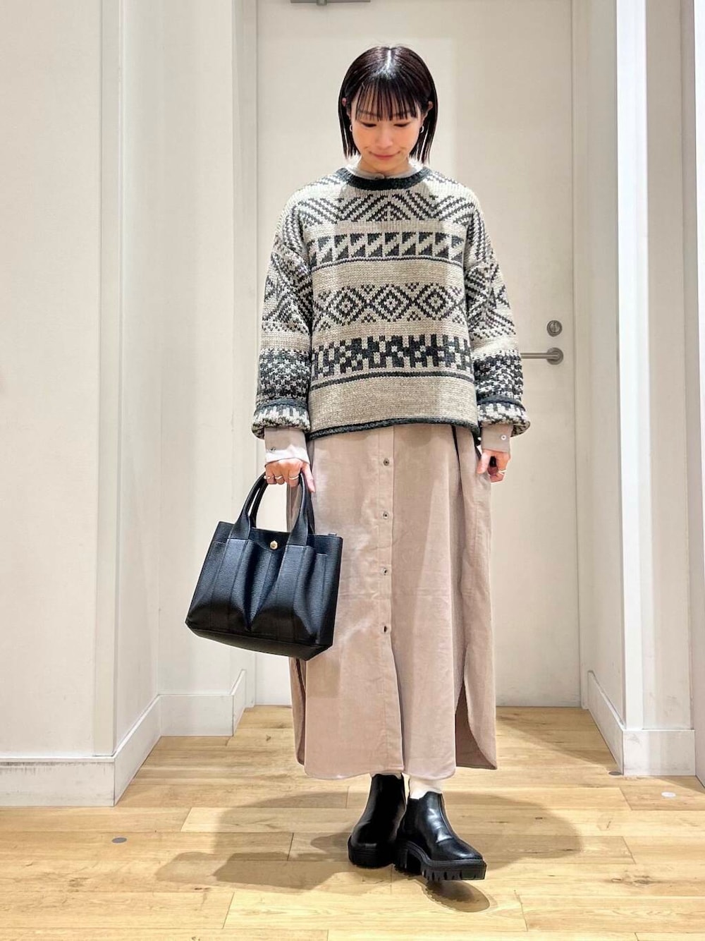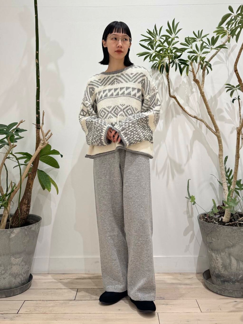 冬の定番であるノルディック柄のセーターをベースに、大人っぽい雰囲気に仕上げたダブルジャガードのニットをご用意。