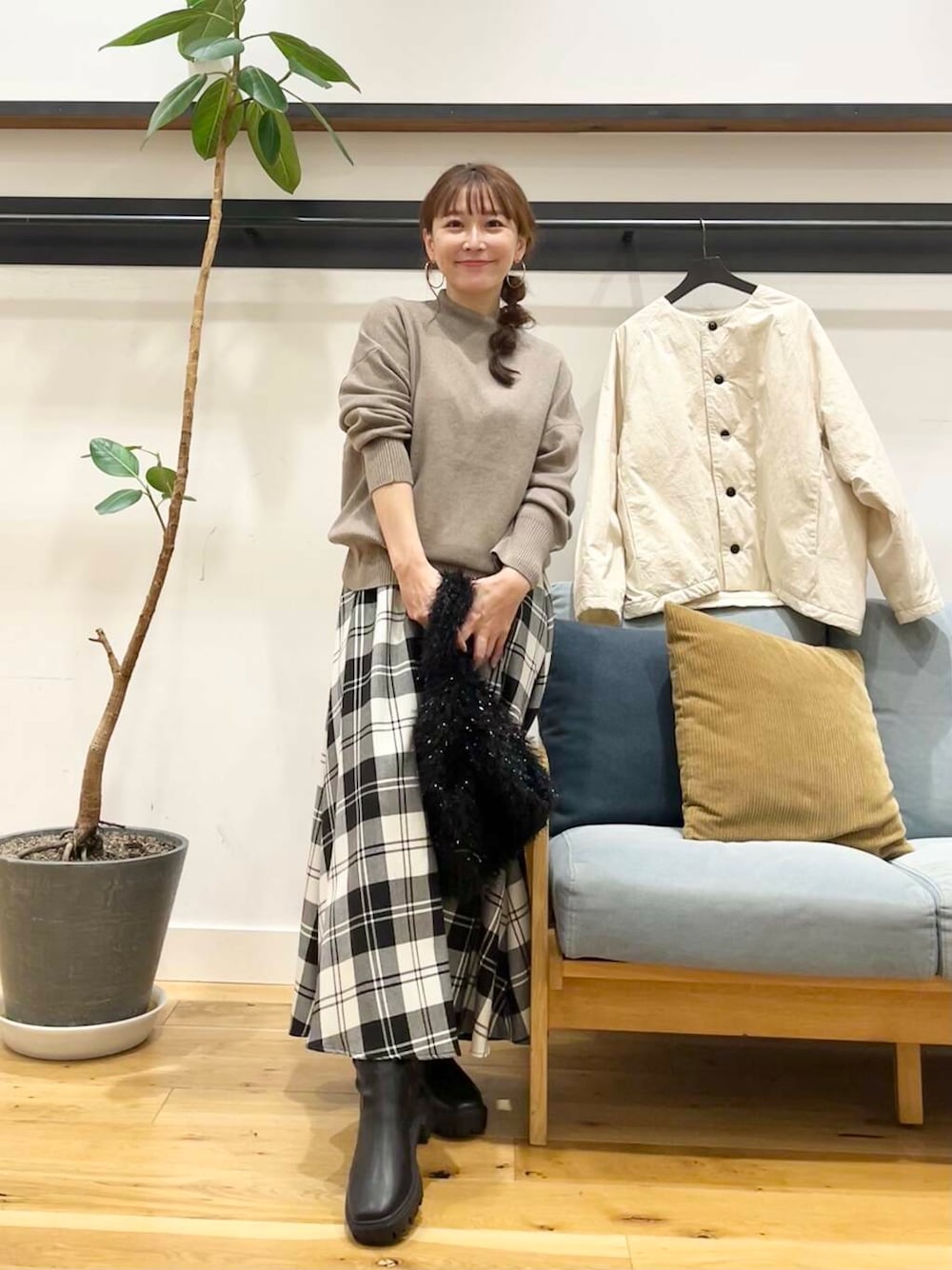 腰回りは太めのリブがスッキリとまとまりを出してくれるため、ワイドパンツやスカートにも相性良く、ボトムスの種類も選びません。