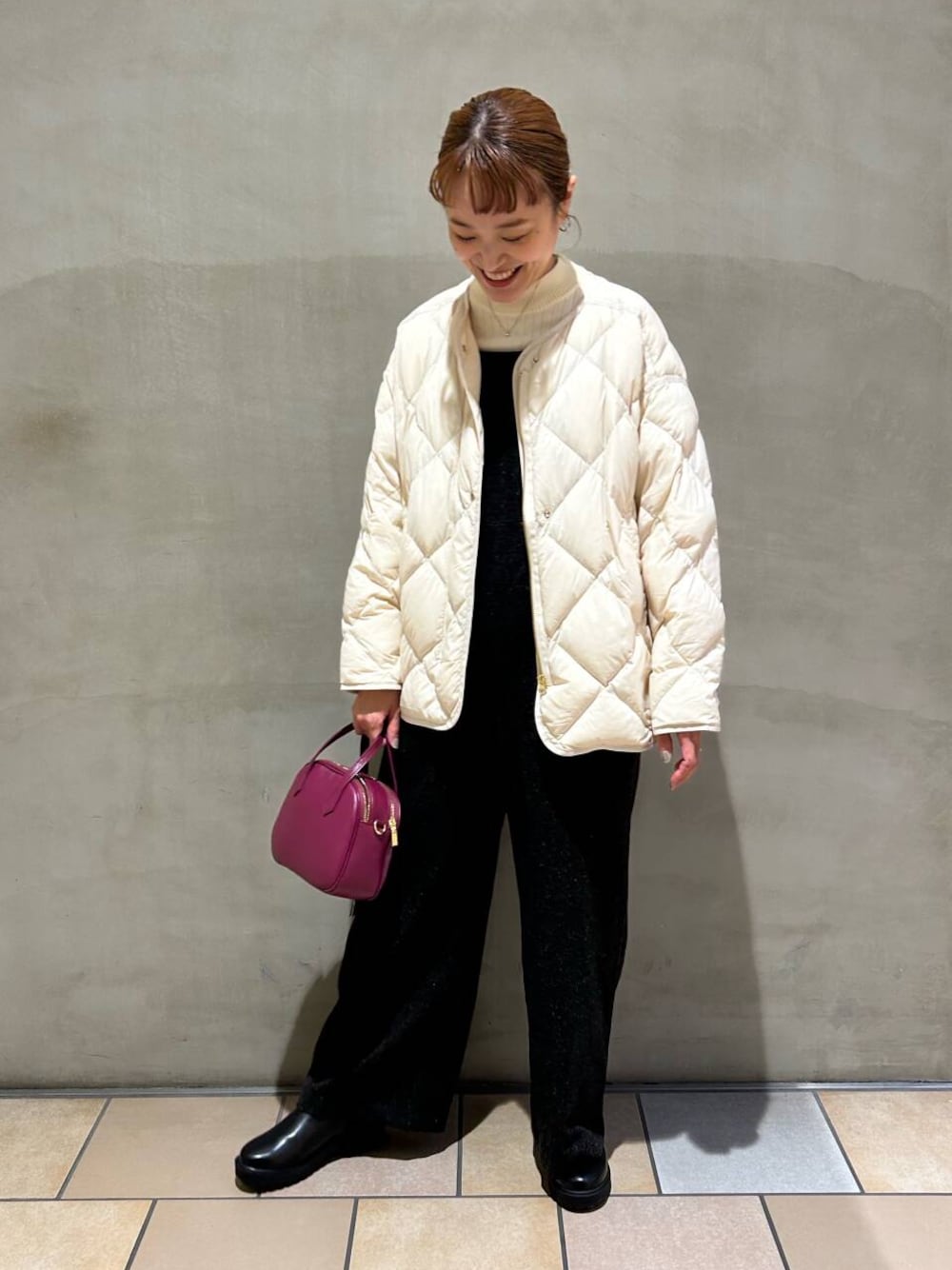詰まり気味のプチハイネックがデザイン性もあるため、いつものコーディネートに新鮮さを出すことができます。