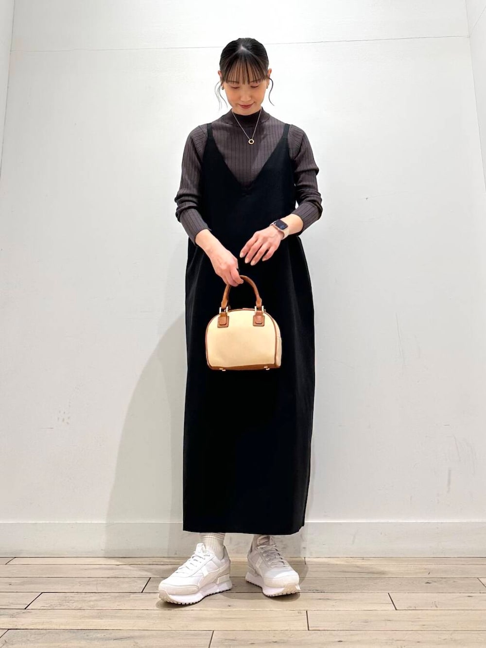 詰まり気味のプチハイネックがデザイン性もあるため、いつものコーディネートに新鮮さを出すことができます。