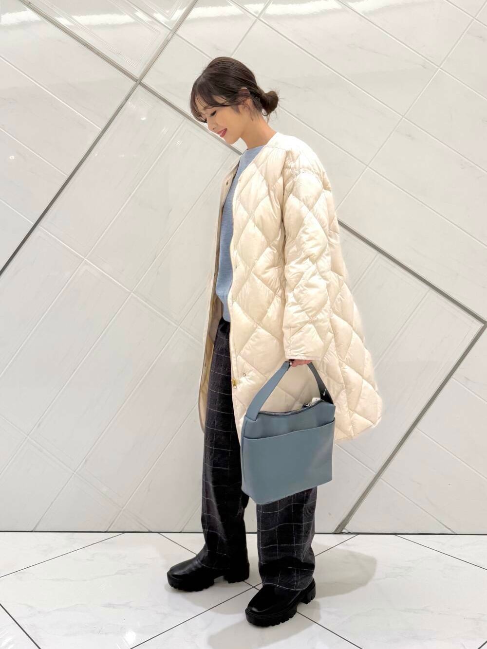 縦のラインを演出してくれる美しいストレートシルエットはオンタイムにも活躍し、上品な質感のある生地も季節を感じさせてくれます。