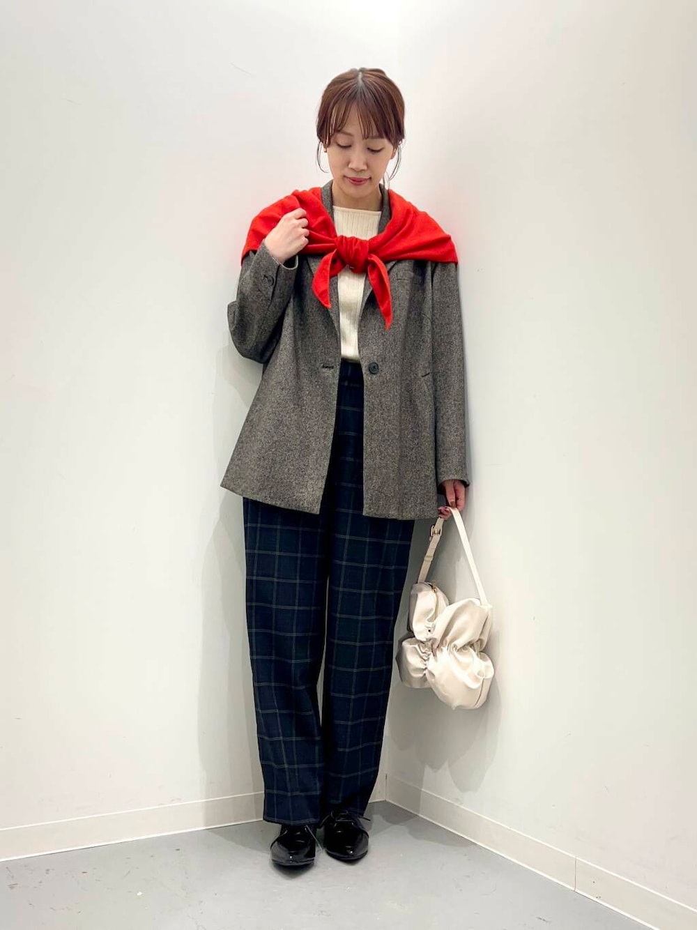 縦のラインを演出してくれる美しいストレートシルエットはオンタイムにも活躍し、上品な質感のある生地も季節を感じさせてくれます。