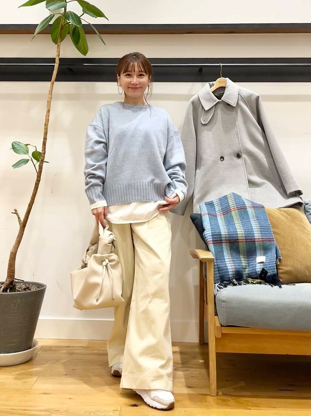 季節を感じさせる太畝のコーデュロイ生地を使用することで存在感が生まれ、ソフトな着心地に似合うナチュラルなカラーをセレクト。