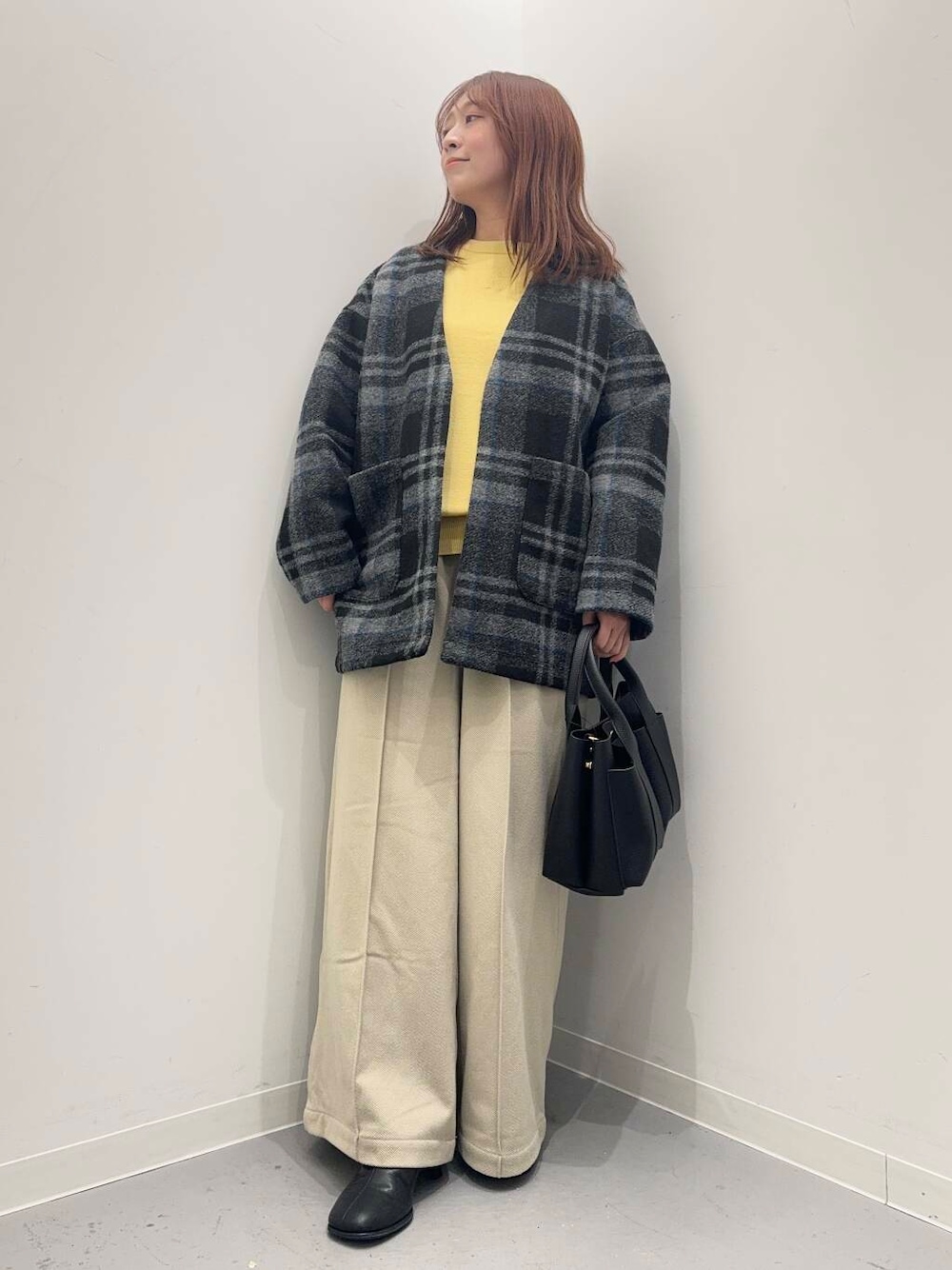 秋冬らしいジャージメルトンの素材は存在感があり、しっかりとワイドなシルエットが大人っぽく上品な印象に。