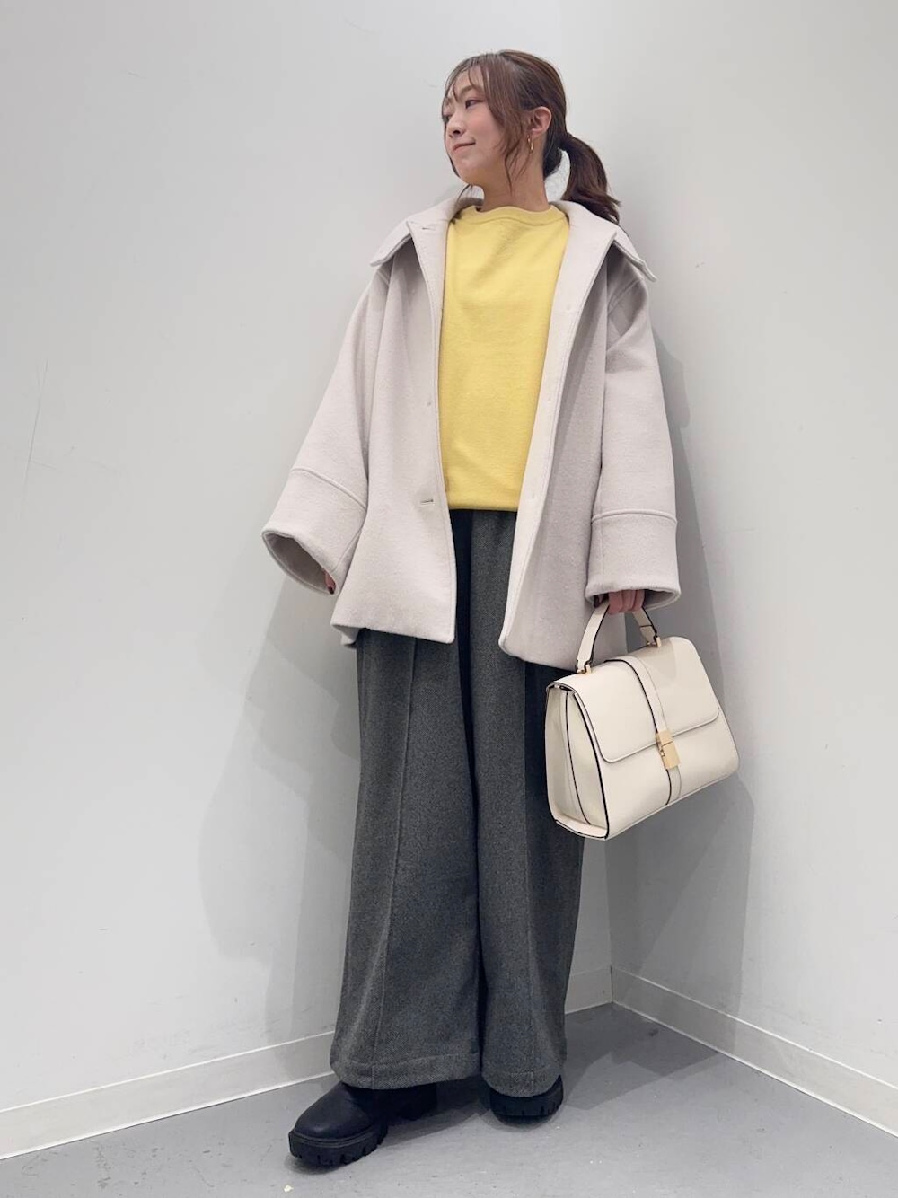 秋冬らしいジャージメルトンの素材は存在感があり、しっかりとワイドなシルエットが大人っぽく上品な印象に。