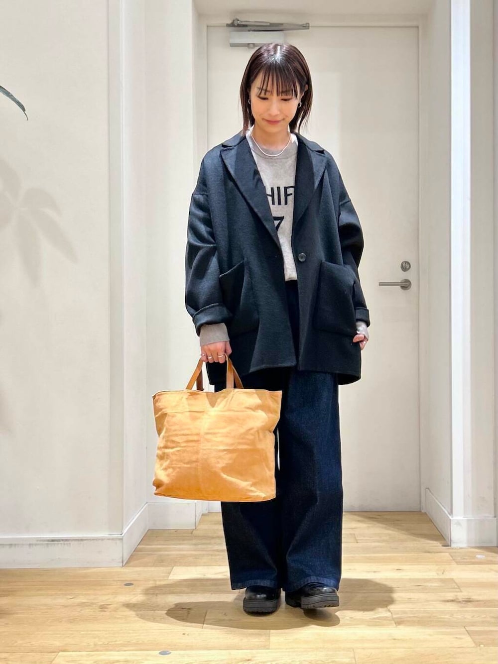 裏起毛のデニム生地は厚さのあるしっかりとした生地感ながらも、重たさを感じないよう柔らかく仕上げています。