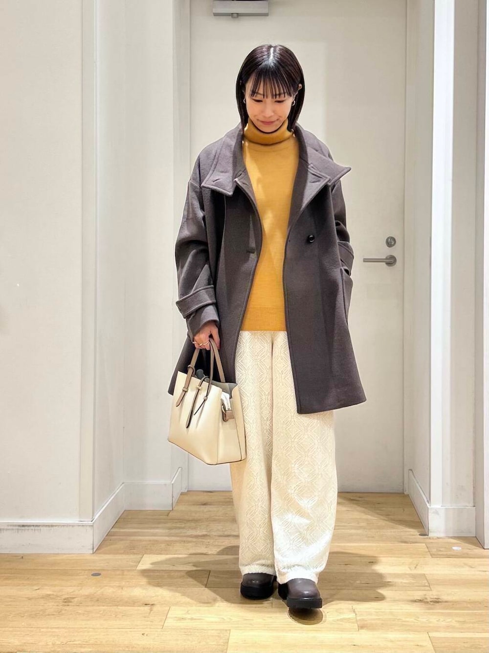 重さの出やすい冬のコーディネートに程よい軽さをプラスし、柄パンツながらも肌馴染みの良いトーンにすることで合わせやすさも持ち合わせました。