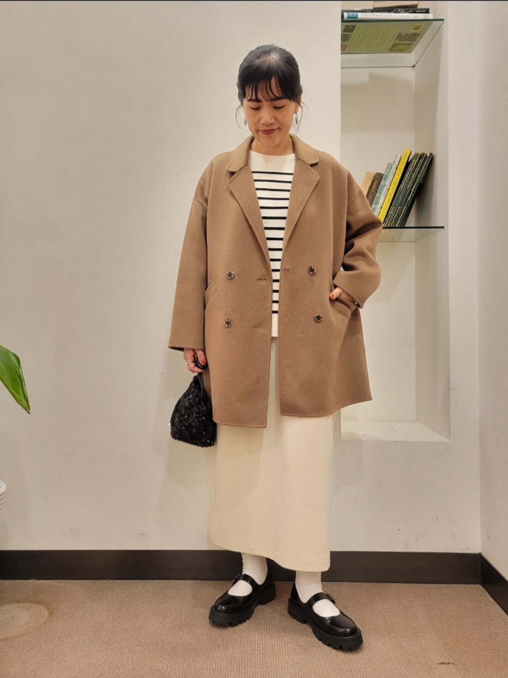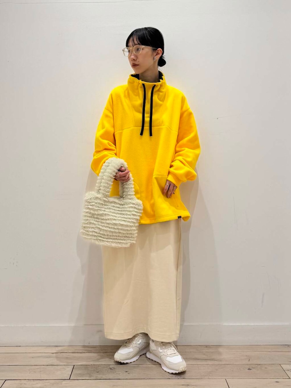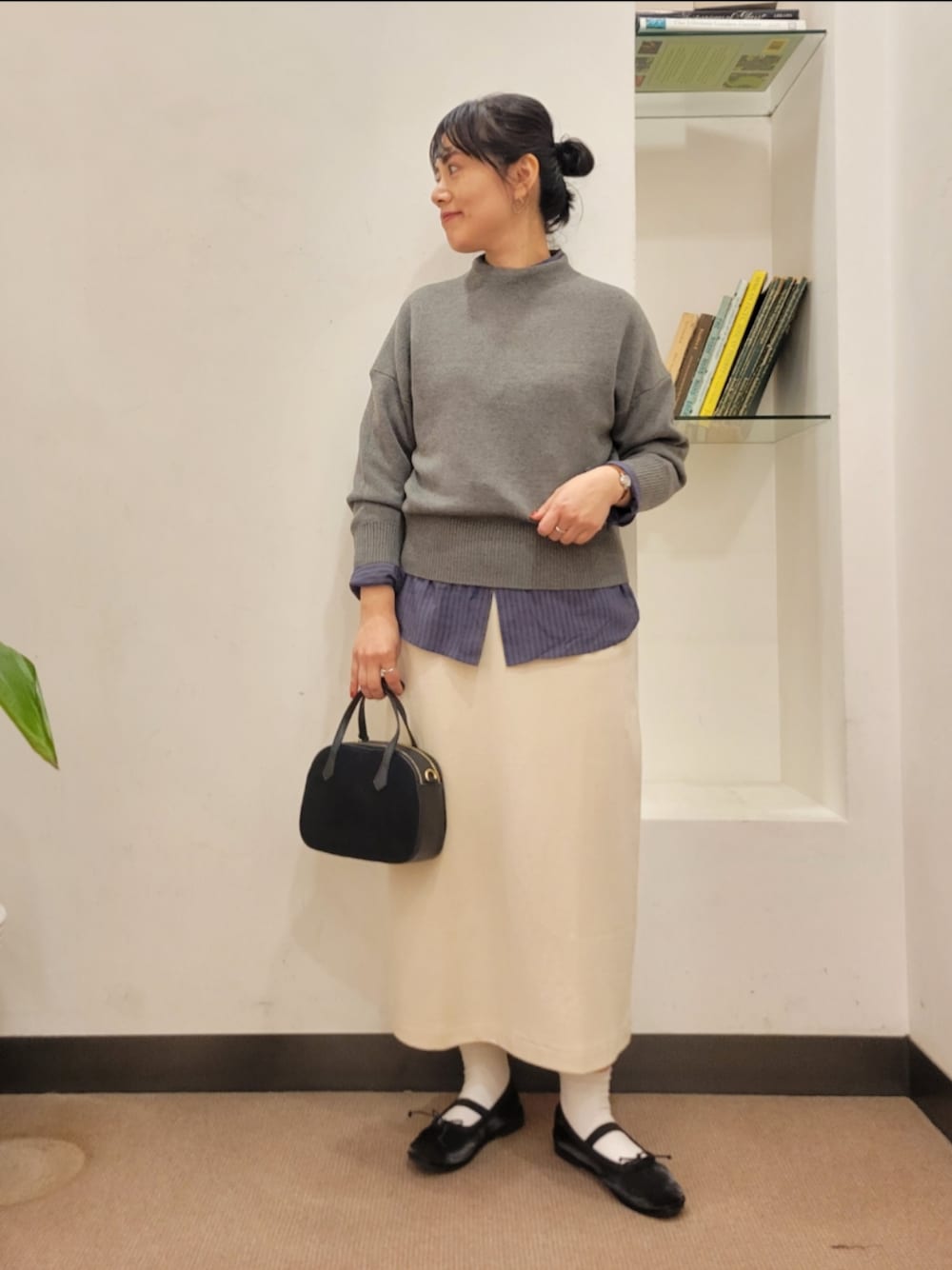 しっかりと長さのある丈に設定することで女性らしさのある縦のラインを作るため、ボリュームのあるトップスとも相性抜群。