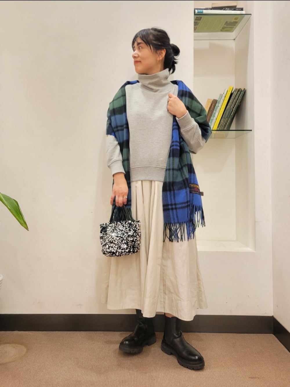 しっかりと長さのあるロング丈がフラットシューズやカットソーとも相性良く、合わせ方次第でカジュアルからキレイめにまで幅広く活躍します。