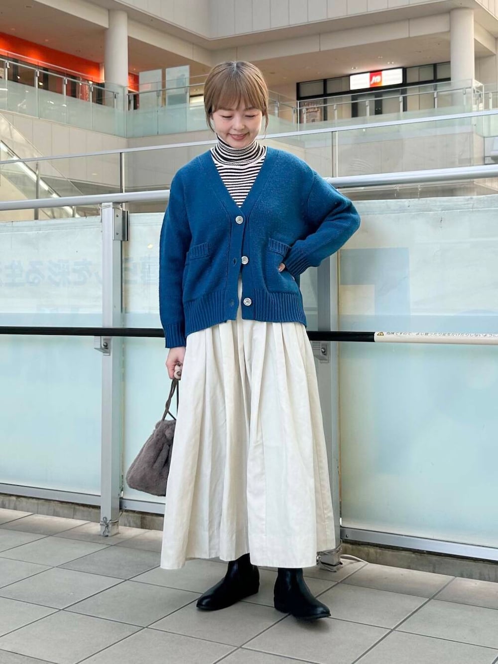 しっかりと長さのあるロング丈がフラットシューズやカットソーとも相性良く、合わせ方次第でカジュアルからキレイめにまで幅広く活躍します。