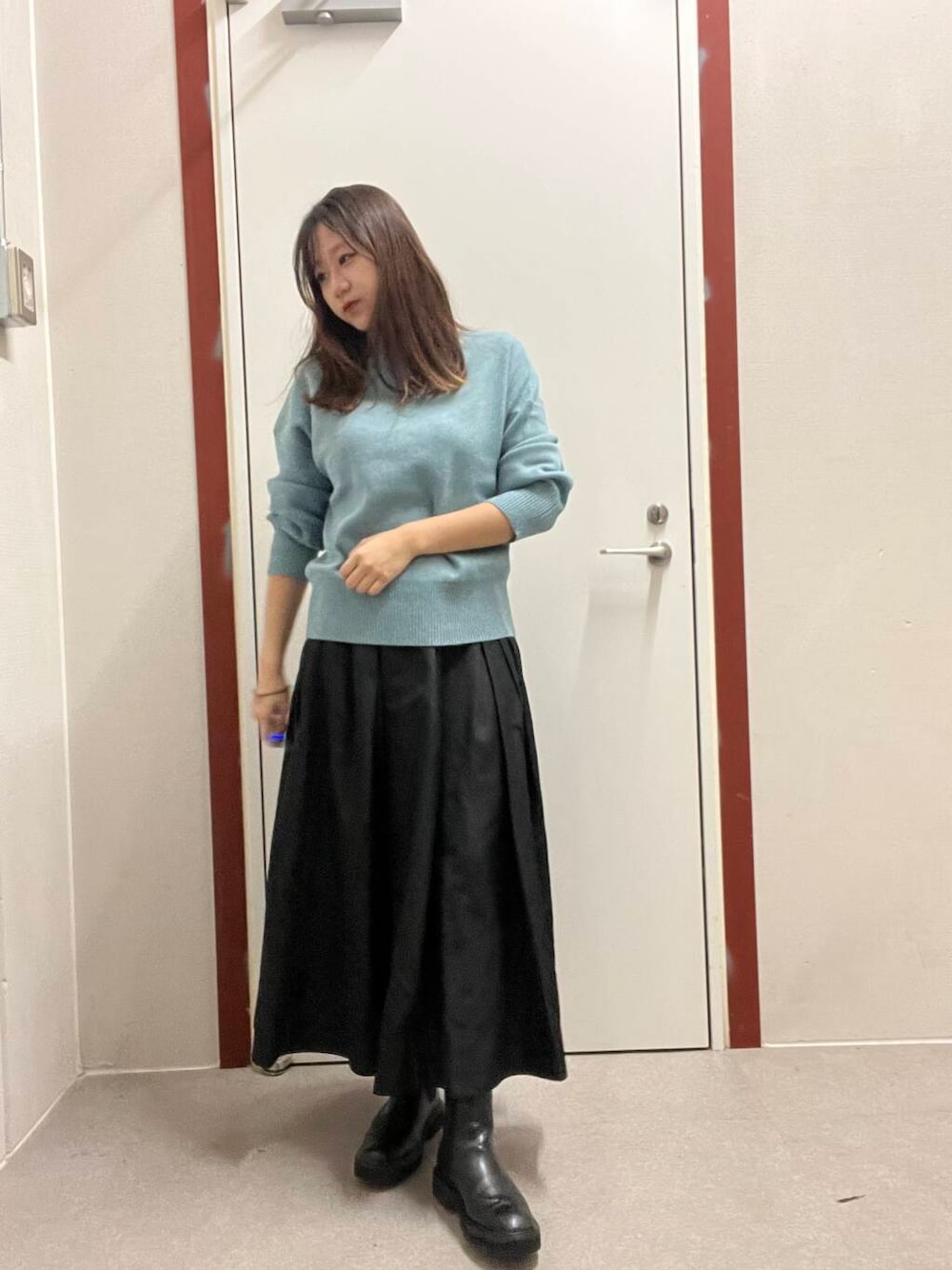 ニットと相性の良いタフタ素材を使用した、立体感のあるシルエットのロングスカート。