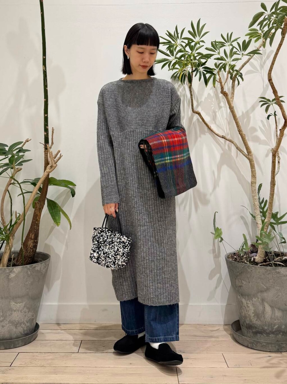 長さをしっかり採ることで足元のバランスも取りやすく、一枚ではもちろんボトムスとのレイヤードもオススメです。