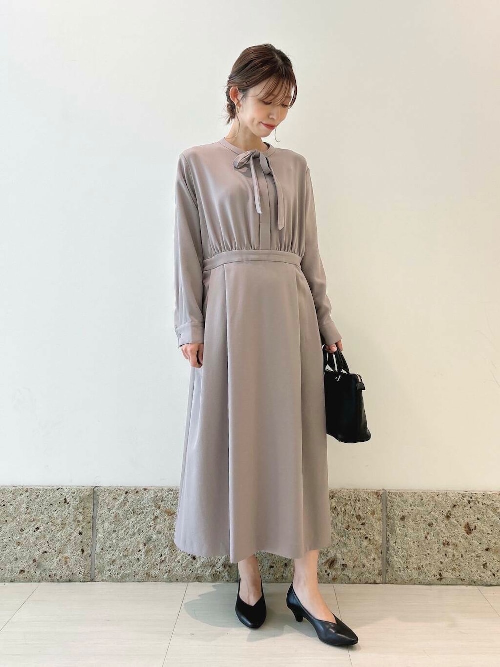 ウエストにタックやギャザーの入ったシンプルなデザインに、衿元に付いたボウタイが顔周りに華やかさを出してくれます。