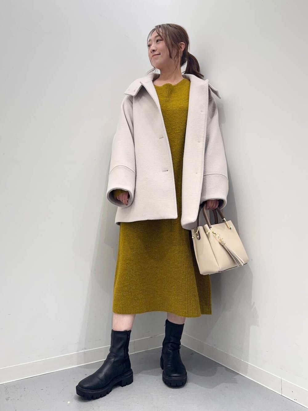 程よい着丈はブーツやタイツ合わせの1枚での着用はもちろん、ボトムスとも好相性で、幅広いスタイリングを楽しめます。