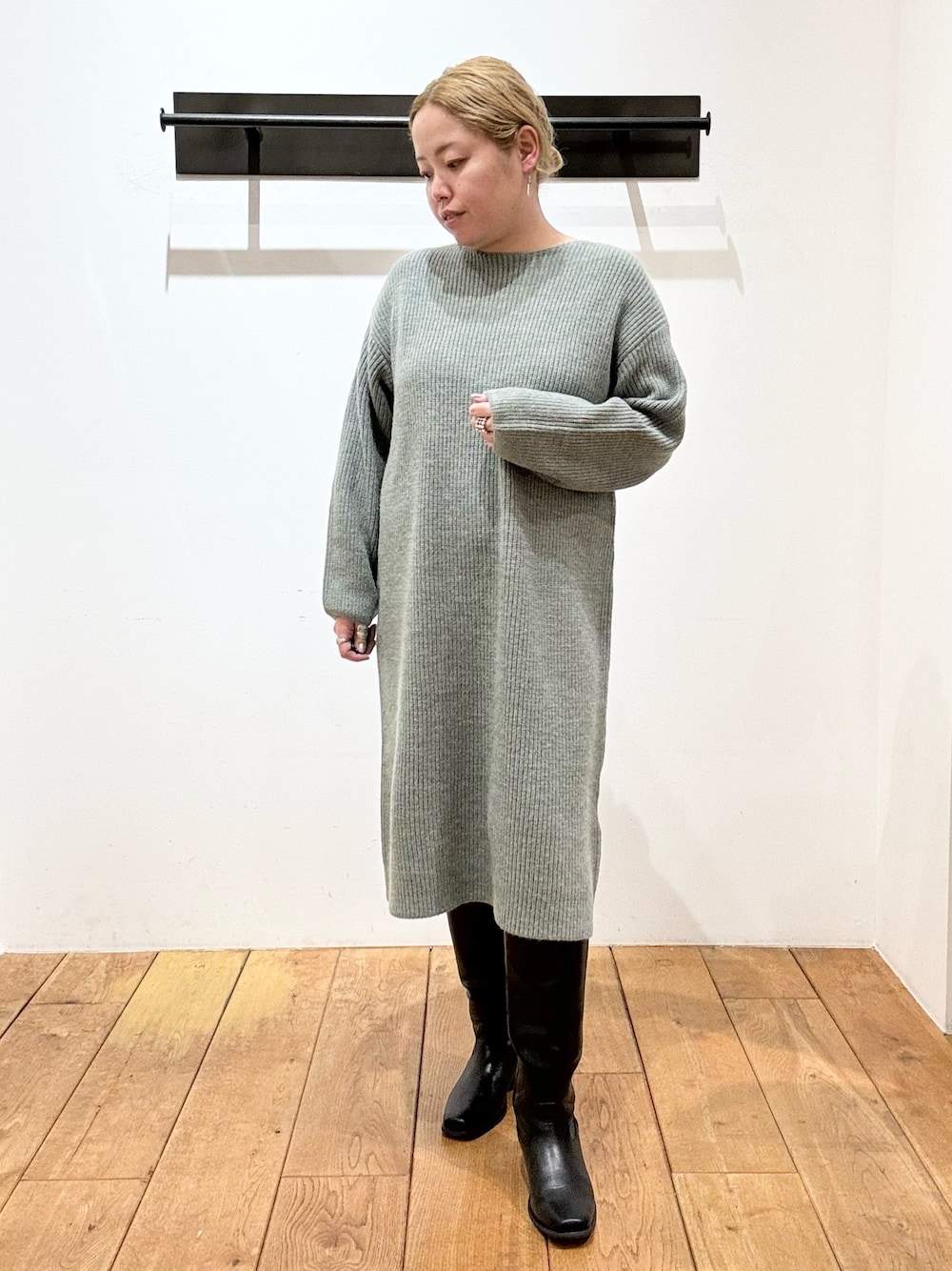 表情豊かな畦編みが特徴のミディ丈ニットワンピース。