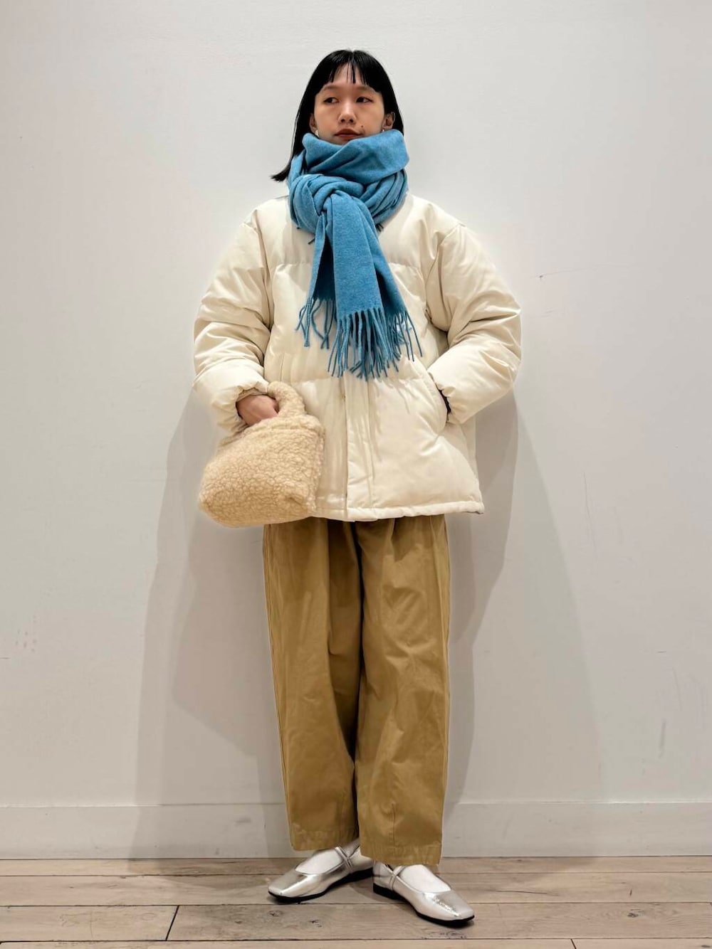 ダウンには、リサイクルにより回収された羽毛を日本が誇る羽毛洗浄技術を駆使し新毛よりもきれいな羽毛とされる「Green Down」(=リサイクルダウン)を使用。