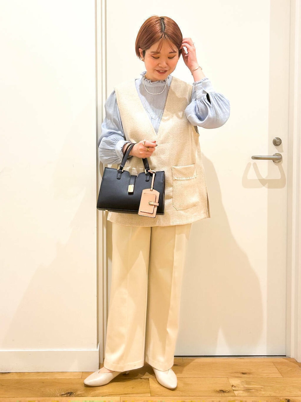 合わせるアイテムによってキレイめにもカジュアルにもマッチし、ブラウスやカットソーなどをレイヤードしてシーズン長く愛用いただけるアイテムです。