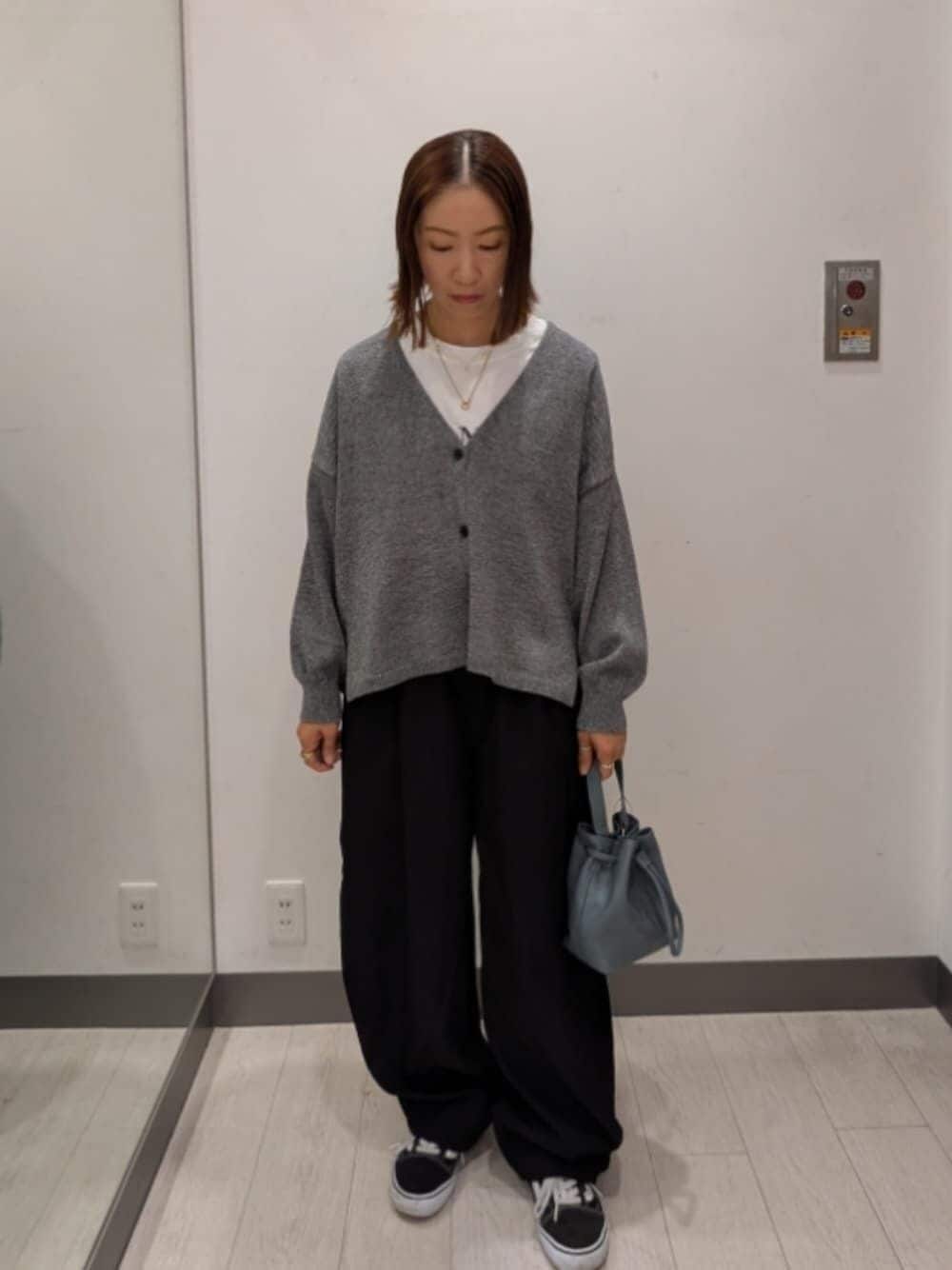 肌触りが良く、ボディはややコンパクトな女性らしいシルエットのため、カーディガンやシャツのインナーとしても重ねやすく重宝します。