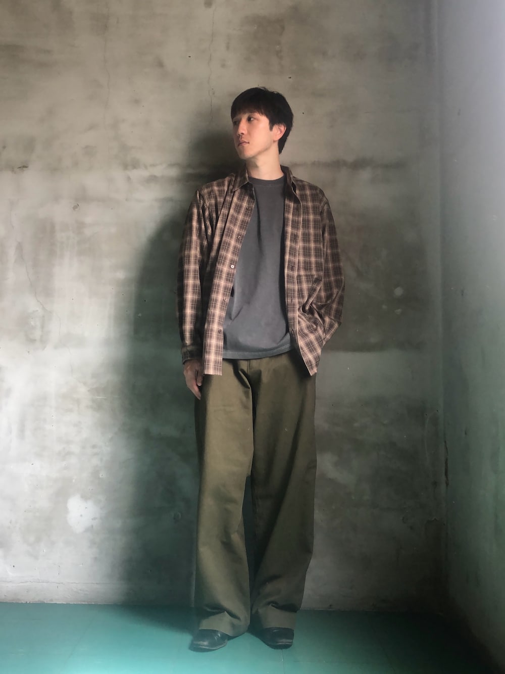 カジュアルになりがちなオンブレチェックシャツですが、きれい目スラックスなどとも相性よく合わせていただけます。もちろんデニムやカーゴパンツなどのカジュアルなアイテムとも相性抜群です。