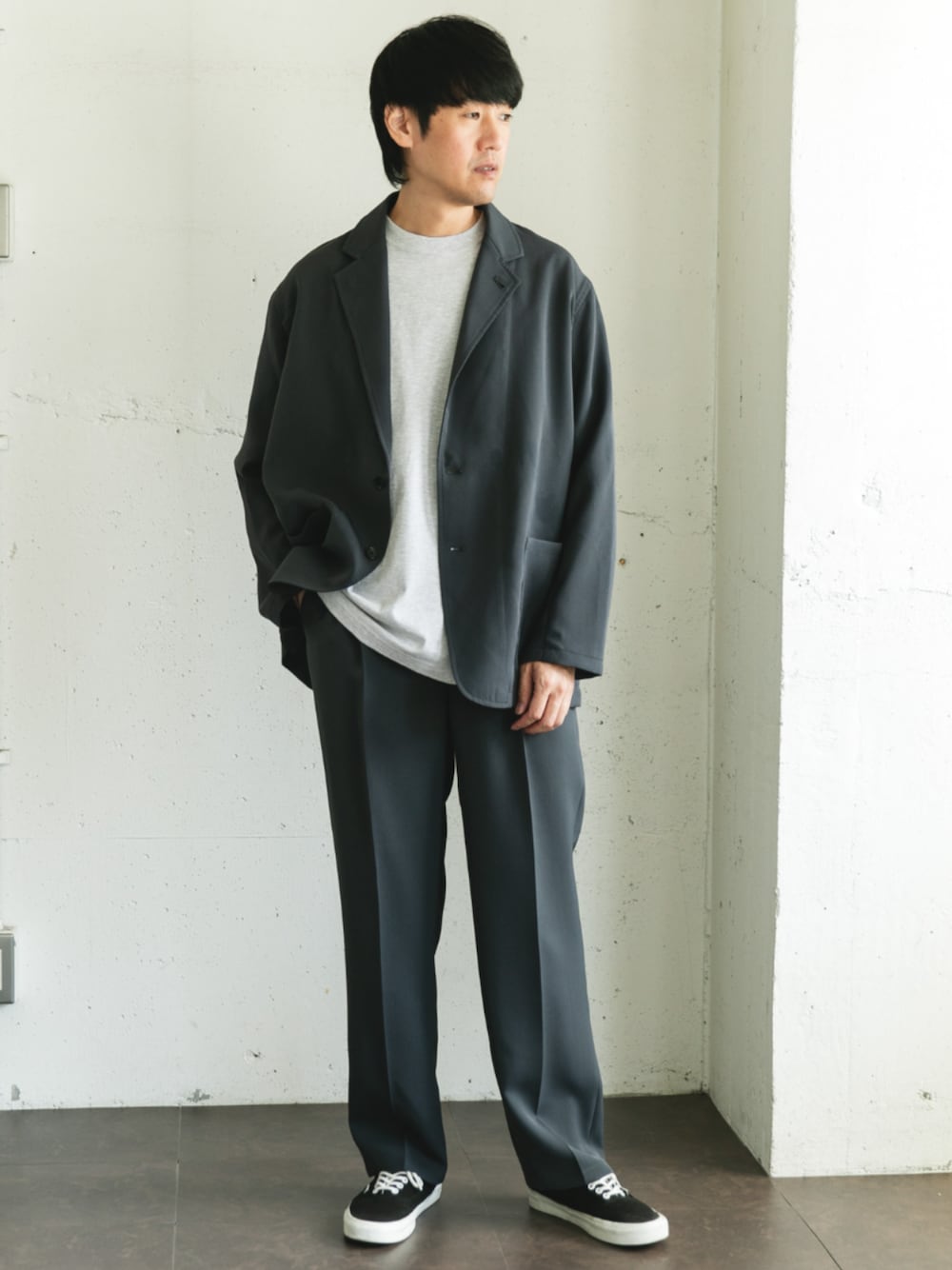 同素材のジャケットとセットアップでの着用も可能です。