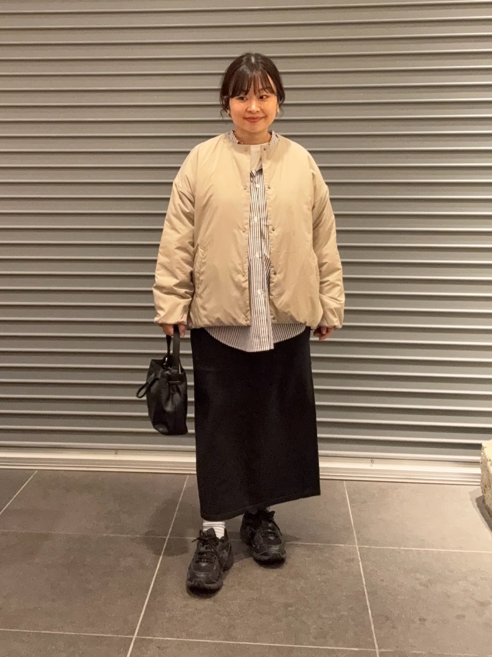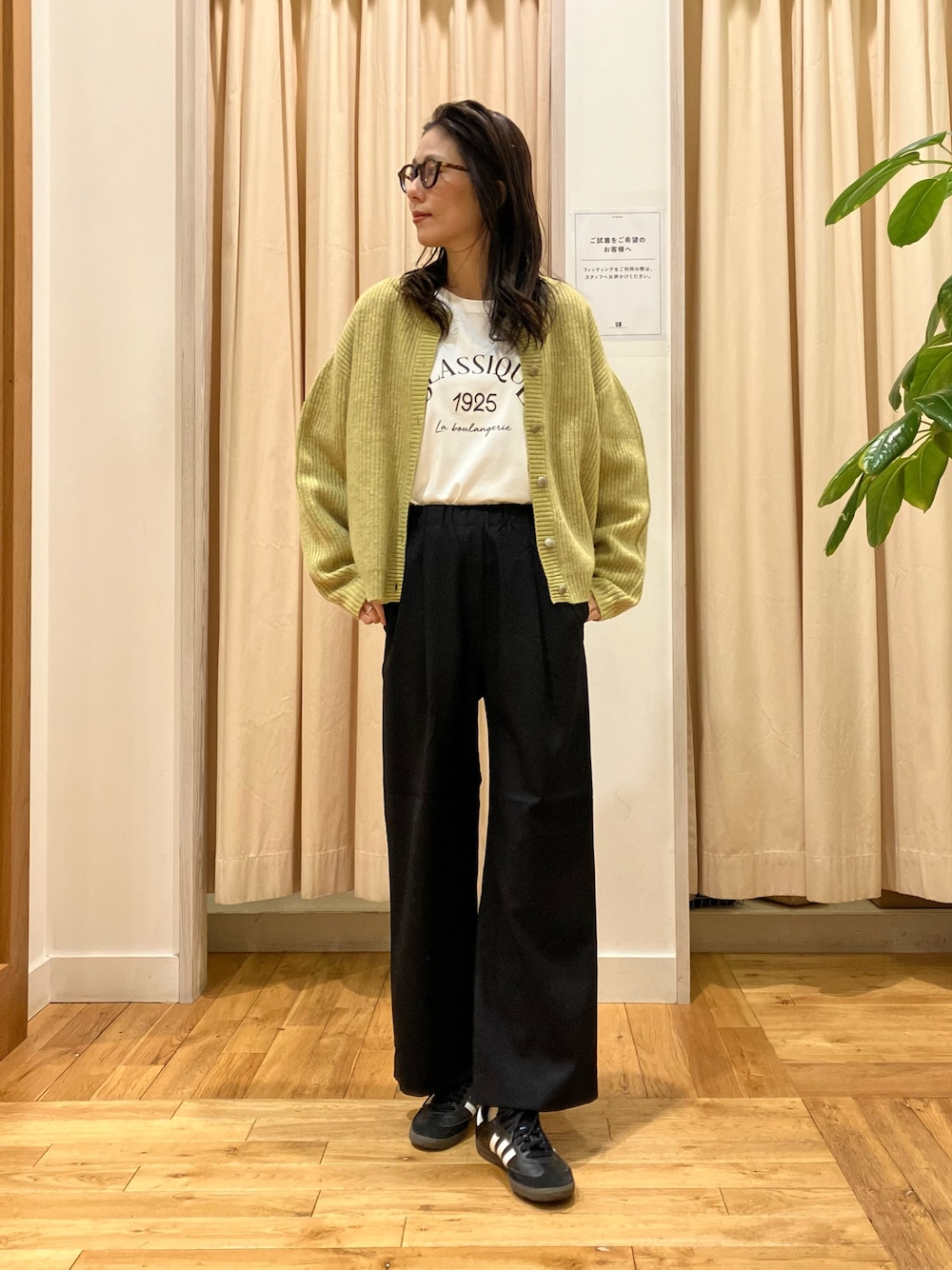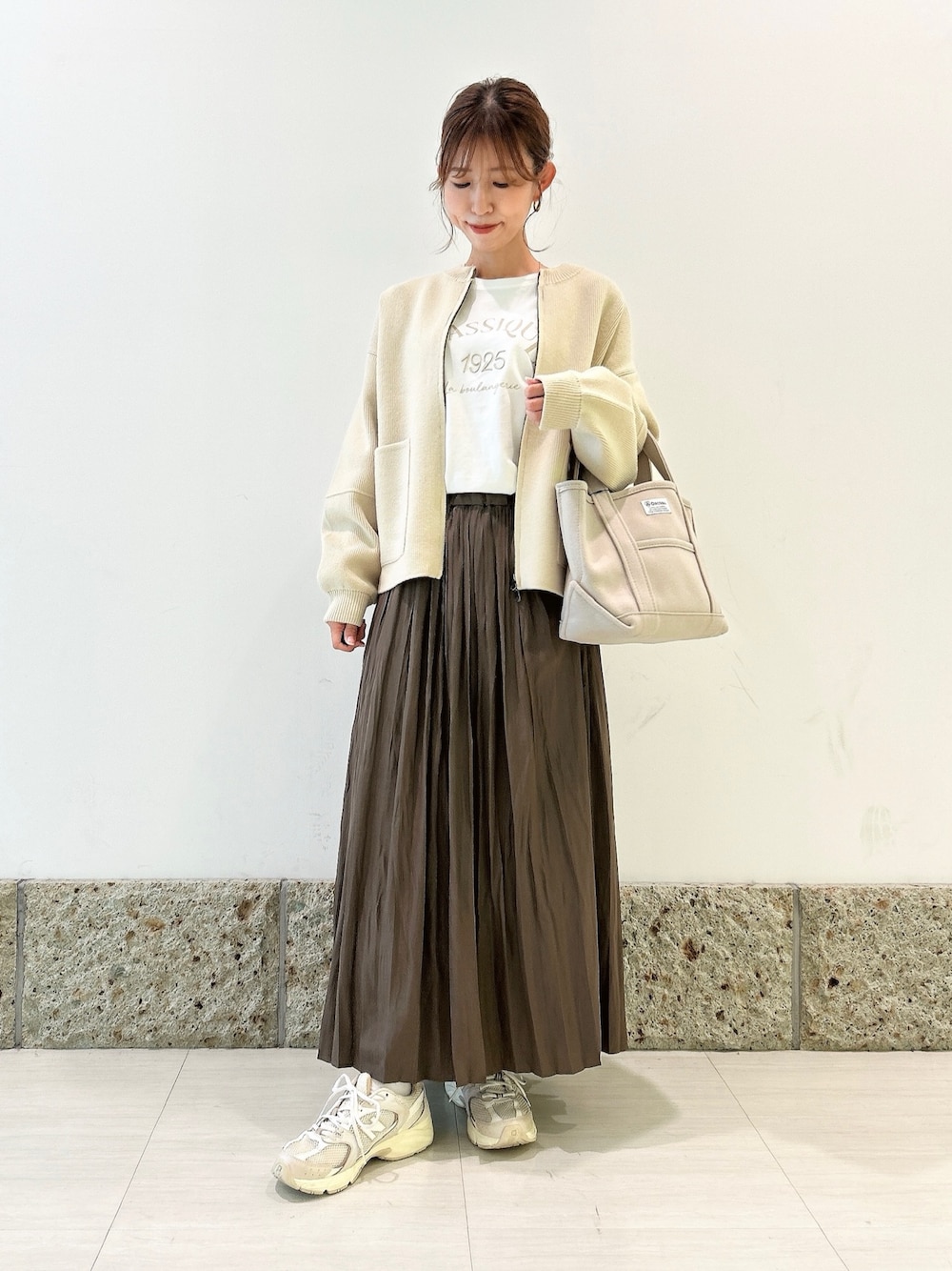 広がりすぎないすっきりとしたシルエットは、一枚でもキレイに着こなせるのが魅力です。