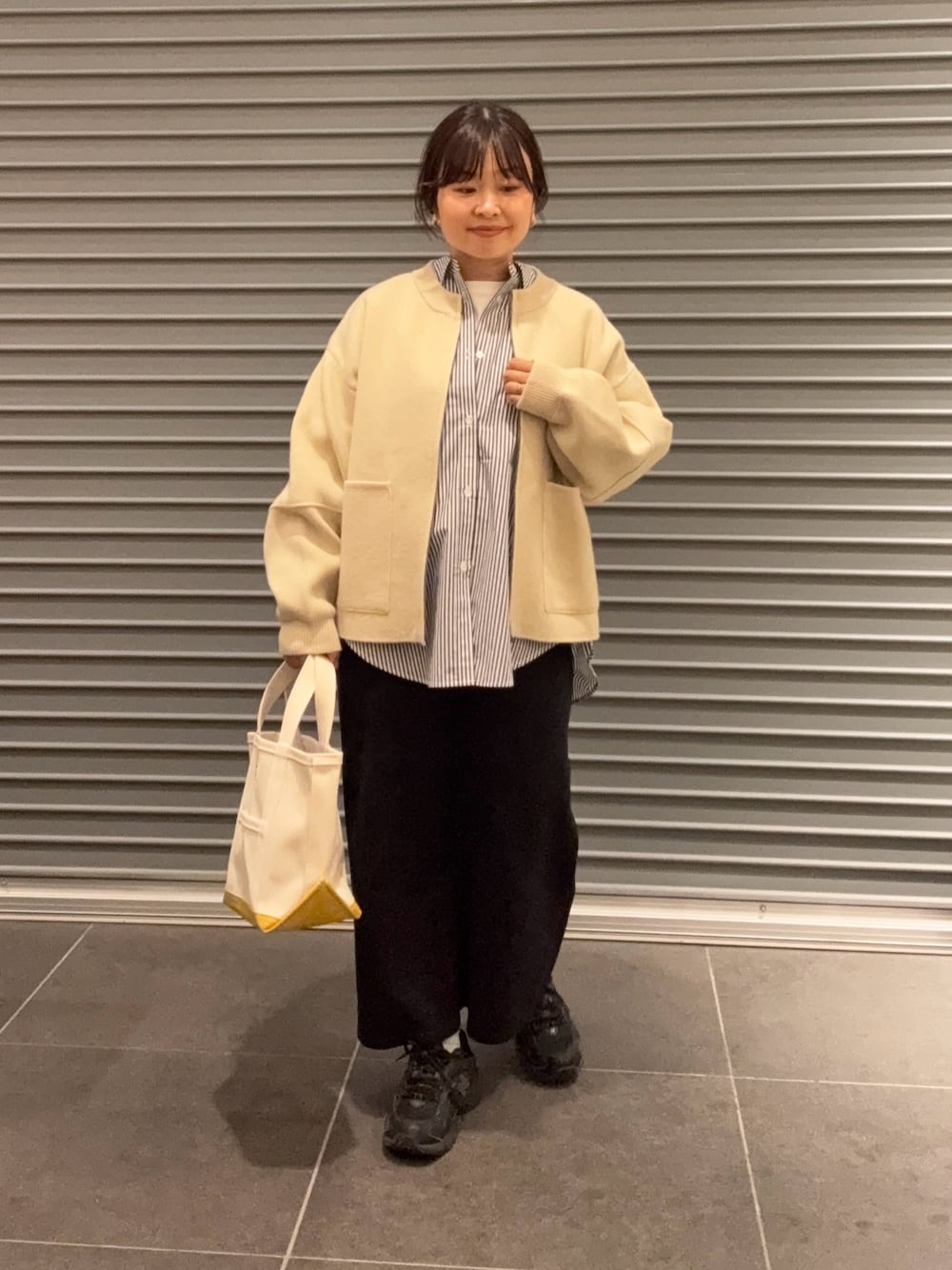 広がりすぎないすっきりとしたシルエットは、一枚でもキレイに着こなせるのが魅力です。