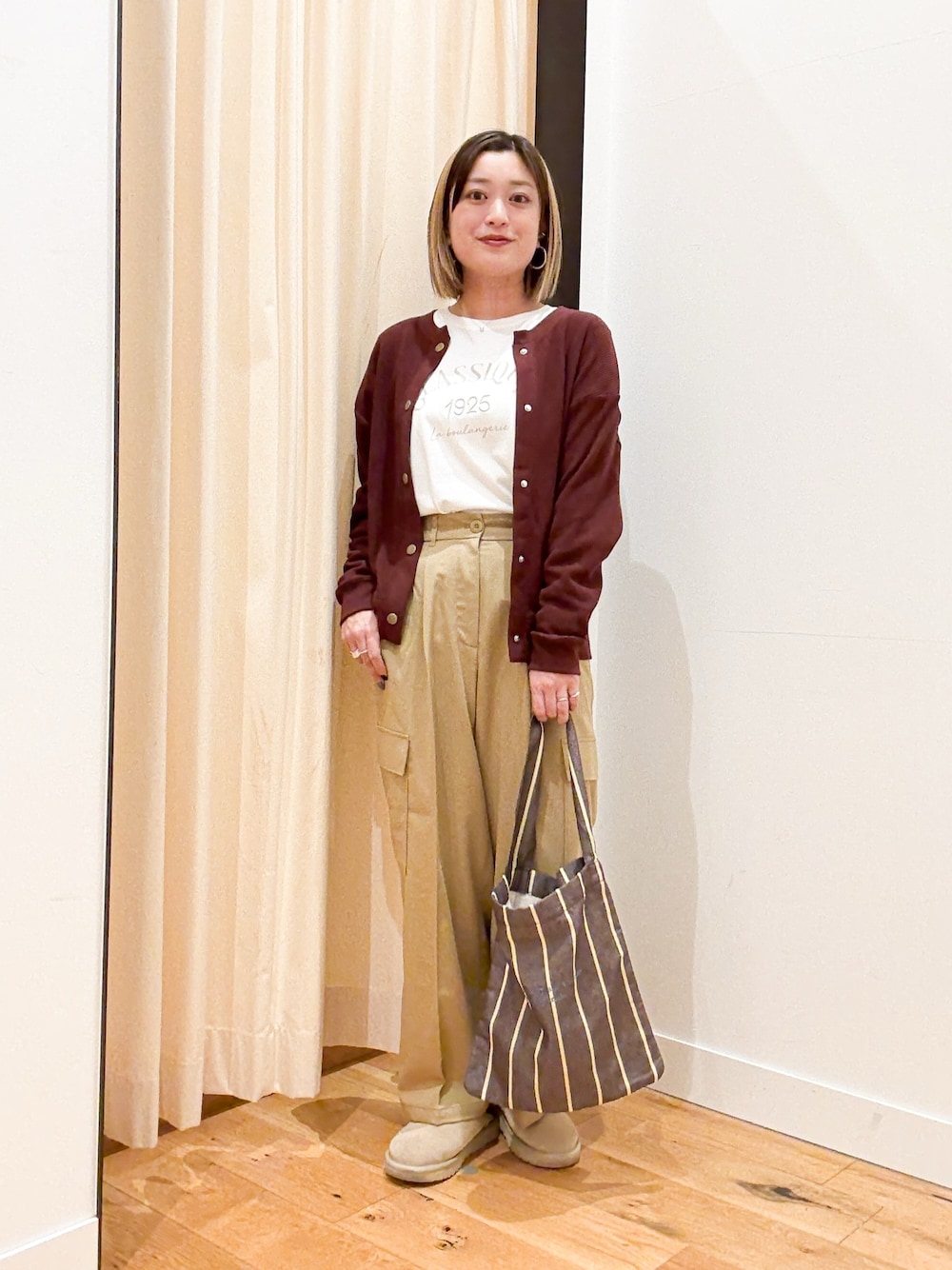 落ち着いたカラー展開で、手持ちのボトムスとも自然に馴染み、毎日のコーディネートに活躍する一枚です。