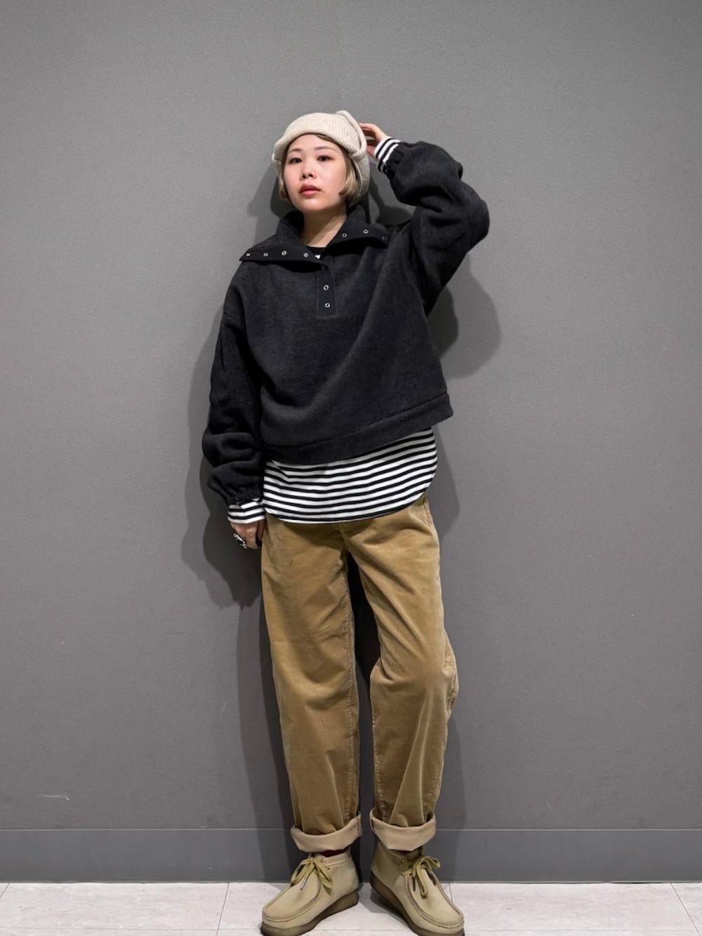 定番の無地オフに加えて今季は新色のボーダーが登場し、スタイリングに抜け感とアクセントをプラス。
