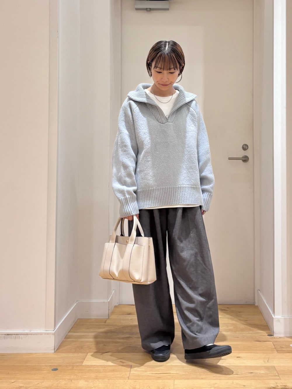 カジュアルからきれいめまで幅広いコーディネートに対応でき、デイリー使いはもちろんレイヤードのベースアイテムとしても活躍。
