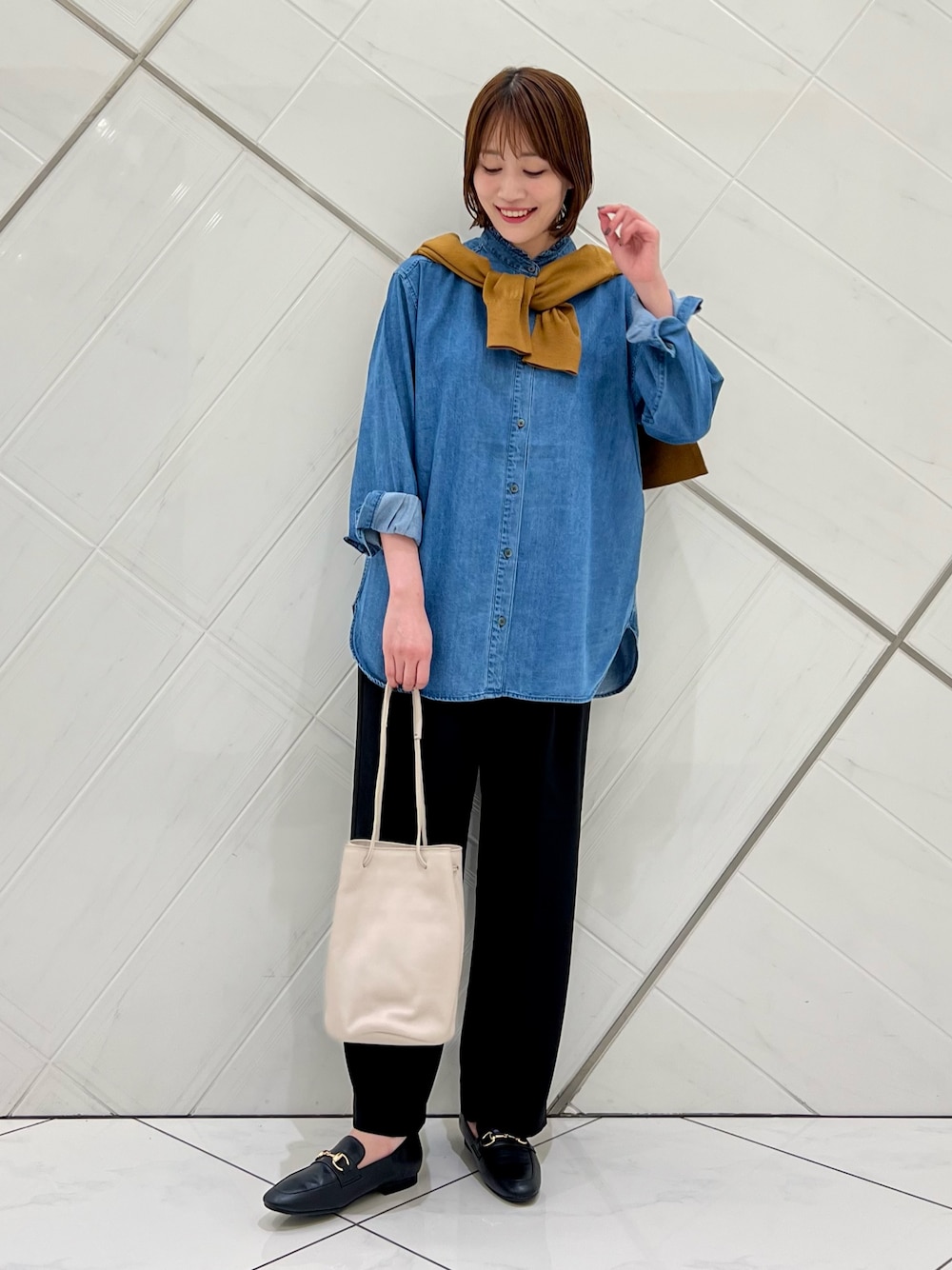 シルエットはすとんと落ちるストレートラインで、脚をすっきり見せつつ上品な印象に。