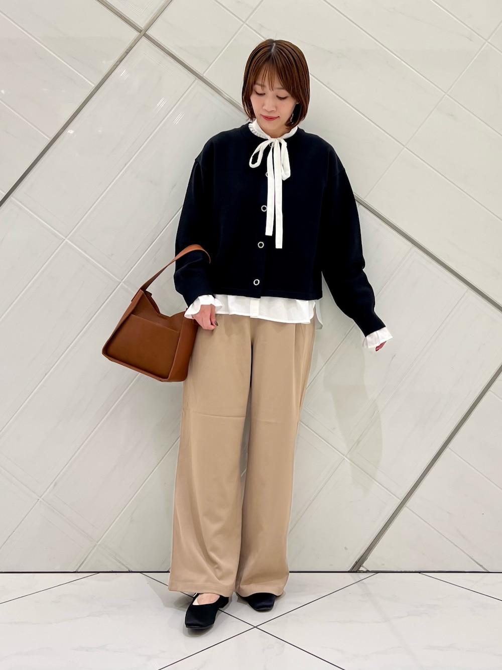 きれいめスカートやワンピースはもちろん、チノパンツやデニムなどのカジュアルなアイテムと合わせるのもおすすめ。