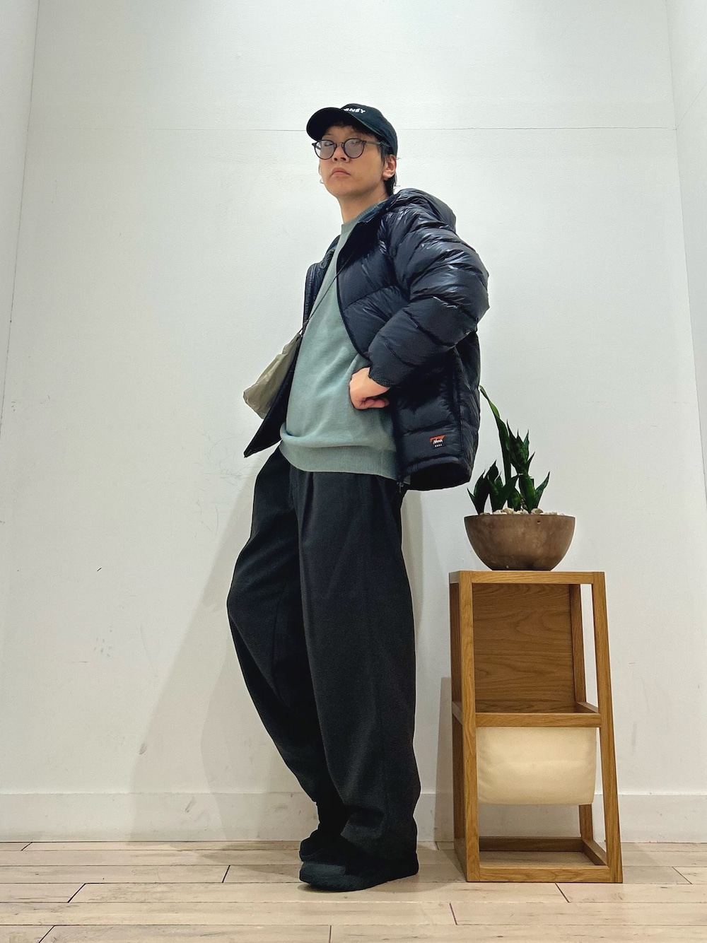 シンプルなアイテムなので合わせるアイテムは問いません。カジュアルなデニムやカーゴパンツ、チノパンはもちろんのこと、きれいめなトラウザーとも相性よく合わせていただけます。