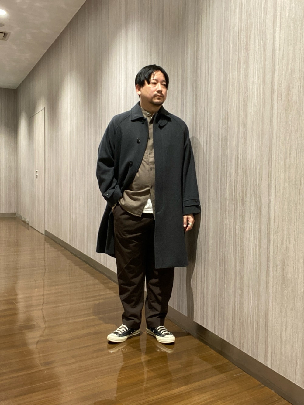ウールのふくらみと温かみを感じるメルトン生地を使用したロングコート。