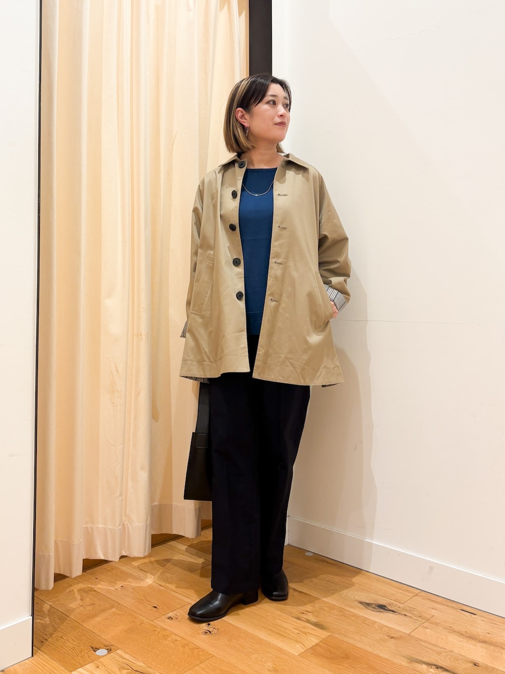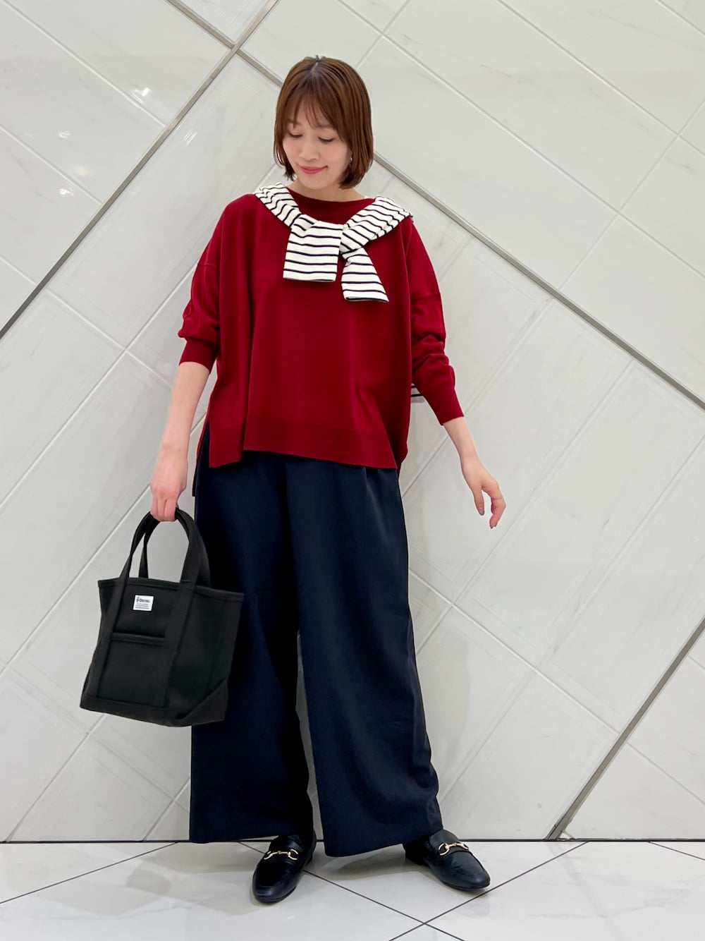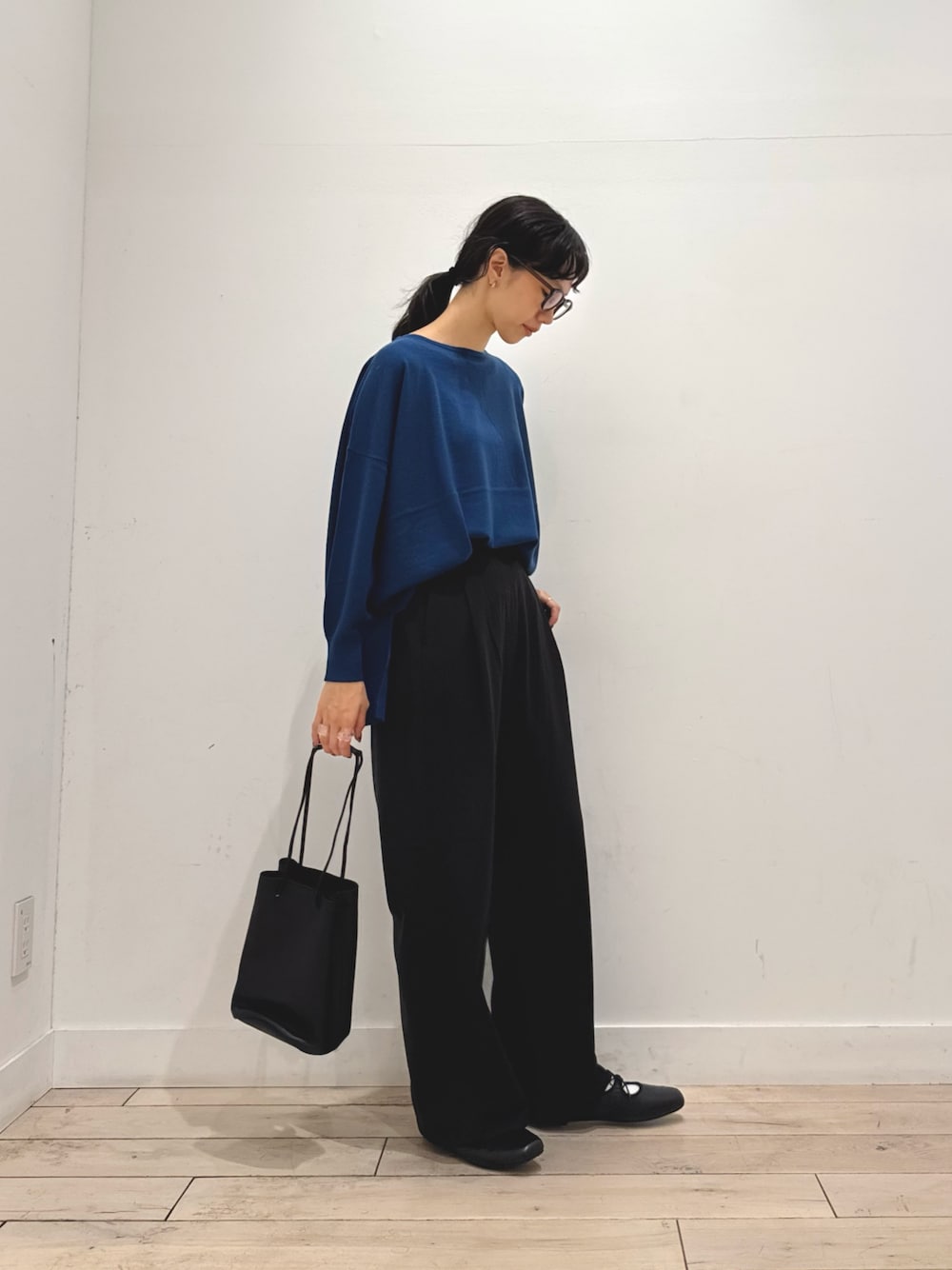 顔周りをスッキリとさせてくれるボートネックや腰にかかる着丈が大人っぽい印象で程よい抜けを演出します。