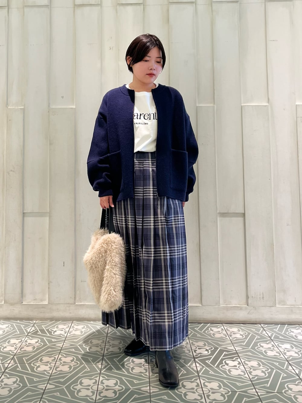 クラシックな表情を持つチェック柄に、しっかりと長さのあるロング丈と太めのプリーツ幅を組み合わせることで、上品さの中に程よいトレンド感をプラス。