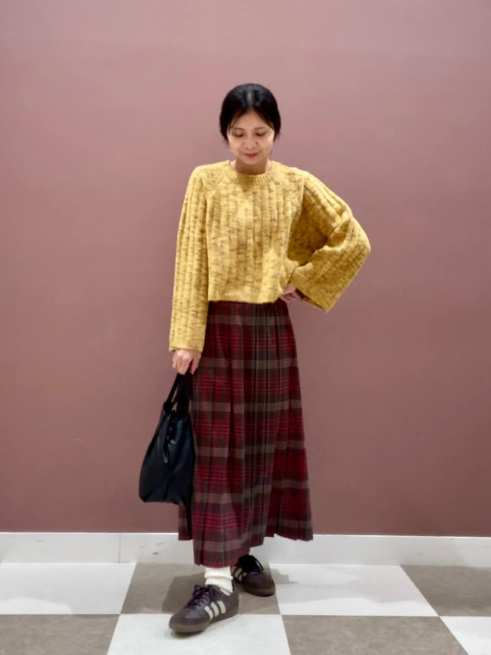 クラシックな表情を持つチェック柄に、しっかりと長さのあるロング丈と太めのプリーツ幅を組み合わせることで、上品さの中に程よいトレンド感をプラス。