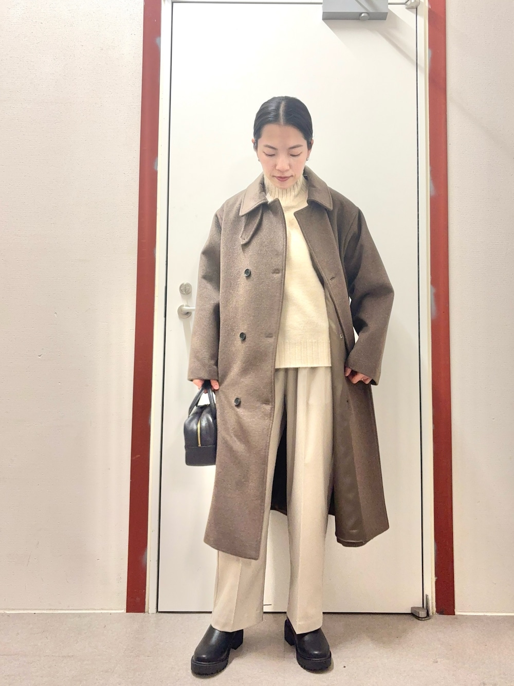 フロントはダブルの仕様でクラシカルな雰囲気を持ちながらも、長めに設定した着丈やセットインのスッキリとしたシルエットが安心感のあるデザイン。