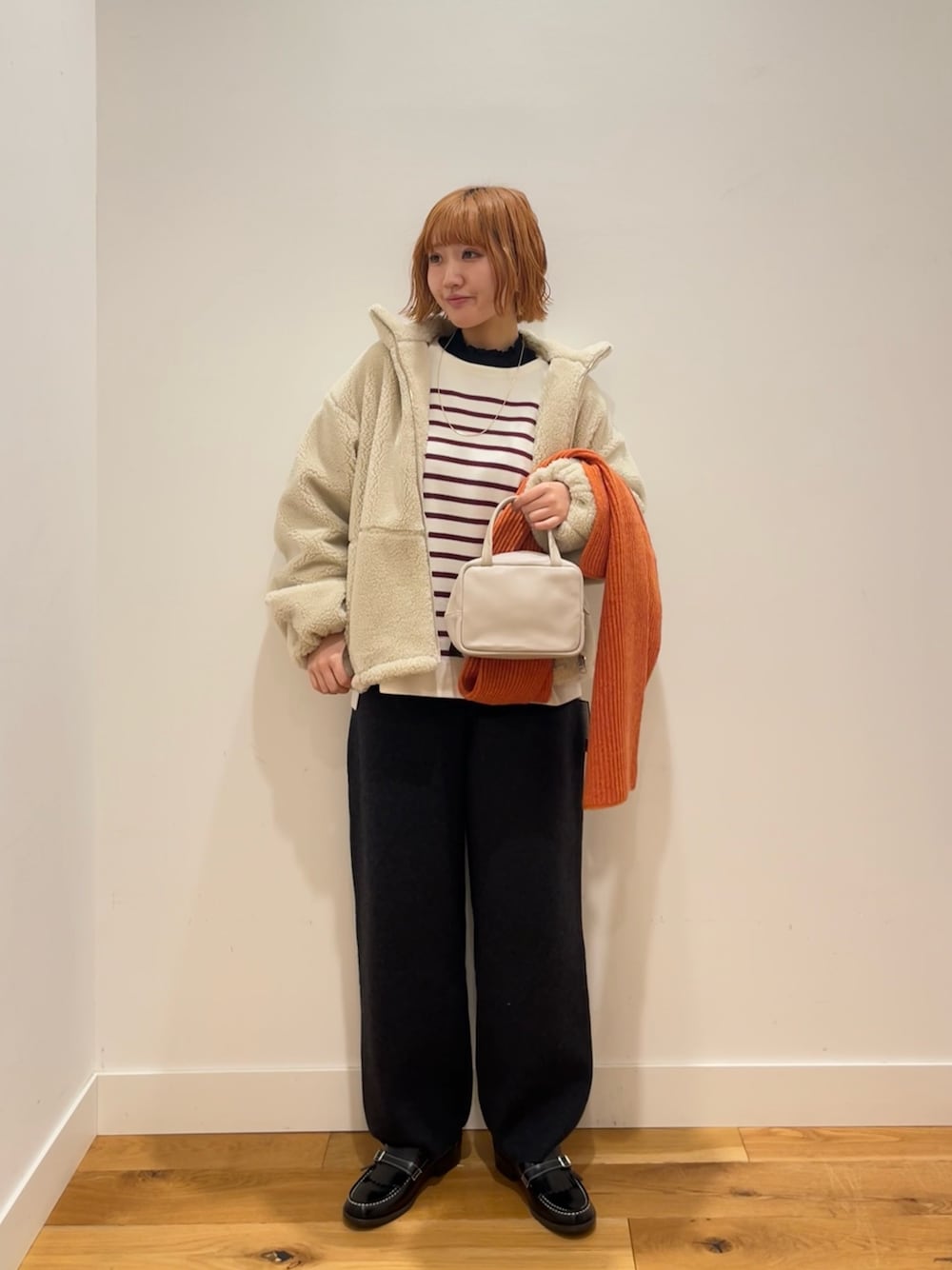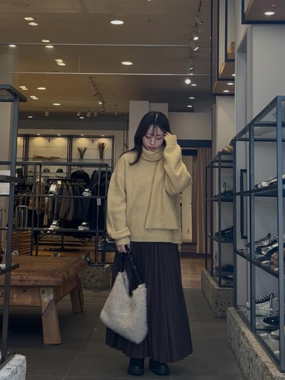 ふっくらとした素材感が温かく首元を包み込み、表情のあるリブ編みがコーディネートのアクセントに。