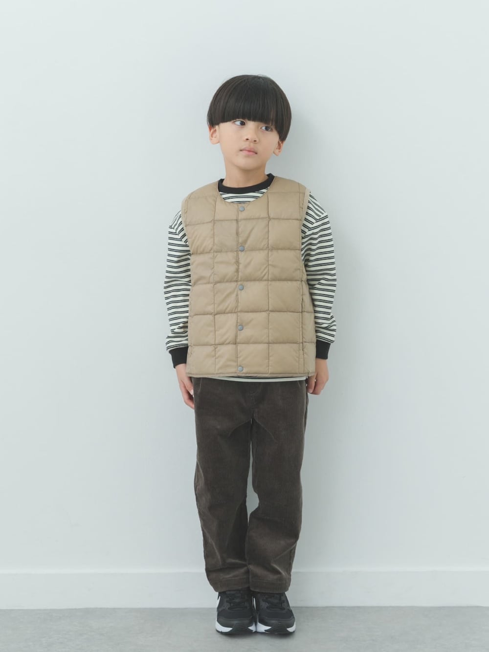 イージーに穿きやすく、キレイ見えもするタックシルエットでお作りしたコーデュロイパンツ。 程よくゆとりを持たせており、女の子にも男の子にも使いやすいデザイン。 太畦のコーデュロイ生地は、見た目からもふんわりとしたあたたかみのある印象に。 着脱簡単なウエストゴムを採用。ソフトストレッチ入りなので、小さいお子様にも安心して着用いただけます。 カラーはどんなトップスにも合わせやすいL.BEIGEとMOCHA、CHARCOALの3色展開でご用意しました。