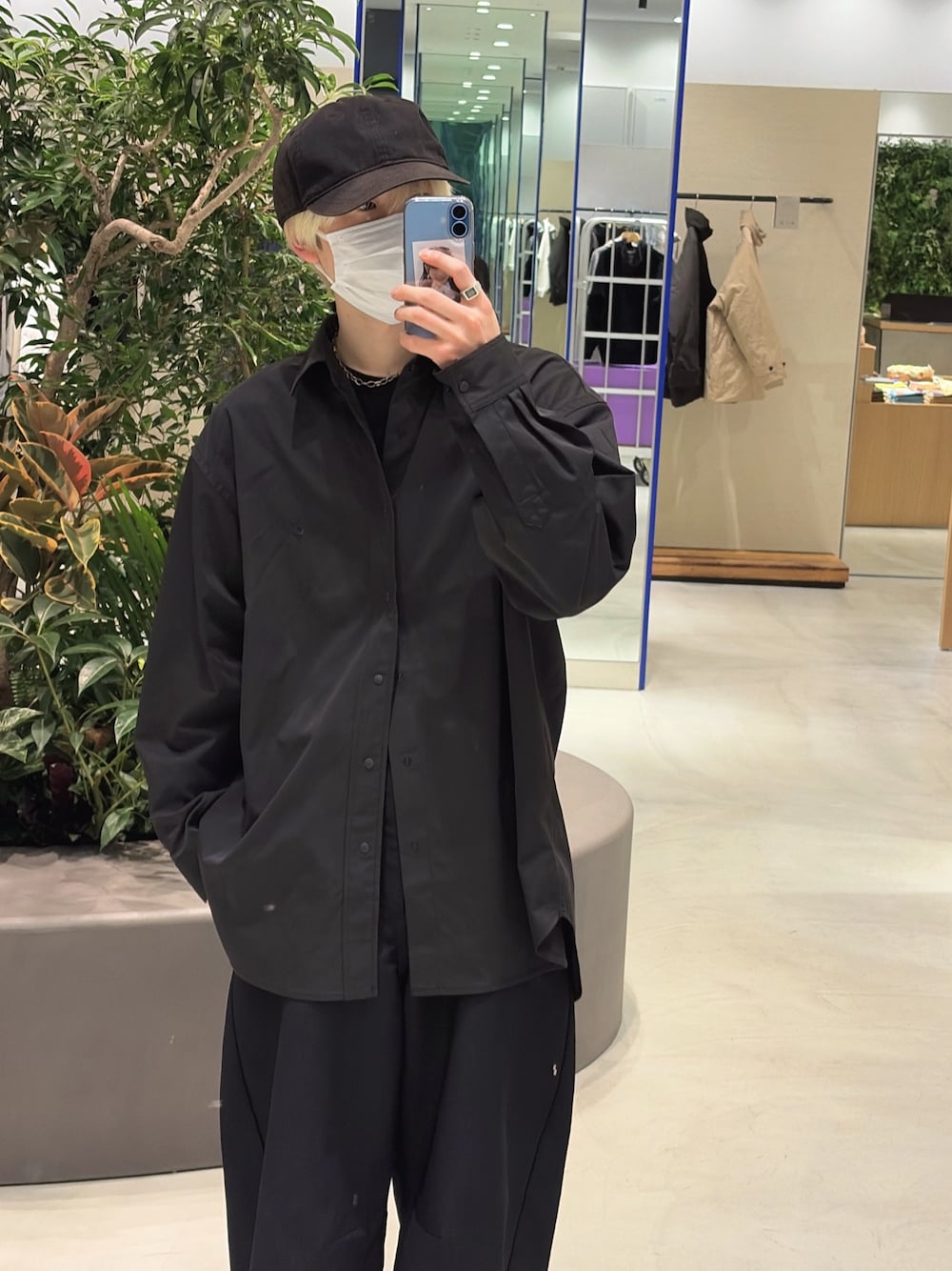 ゆったりとしたワイドシルエットのロングスリーブシャツ。