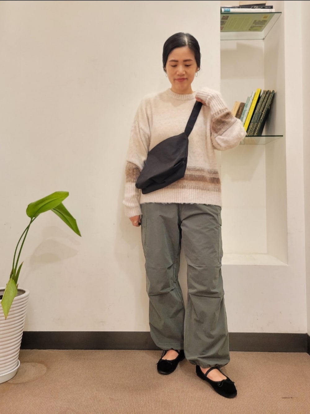 Global Recycled Standardに認定されたペットボトルのリサイクルポリエステルを使用した環境にやさしい糸を使用。ポリエステルならではの軽い素材感と起毛感が特徴の糸でビッグシルエットながらもストレスのない着心地です。昨年と同素材を使用し、トレンドの起毛を施したグラデーションとボーダーのクルーネックデザインにリニューアルしました。緩やかな後ろ下がりデザインとバック裾部分にはスリットを加え、程よく抜け感があり、袖口はサムホールを施し、寒い冬の防寒にもご活用いただけます。
