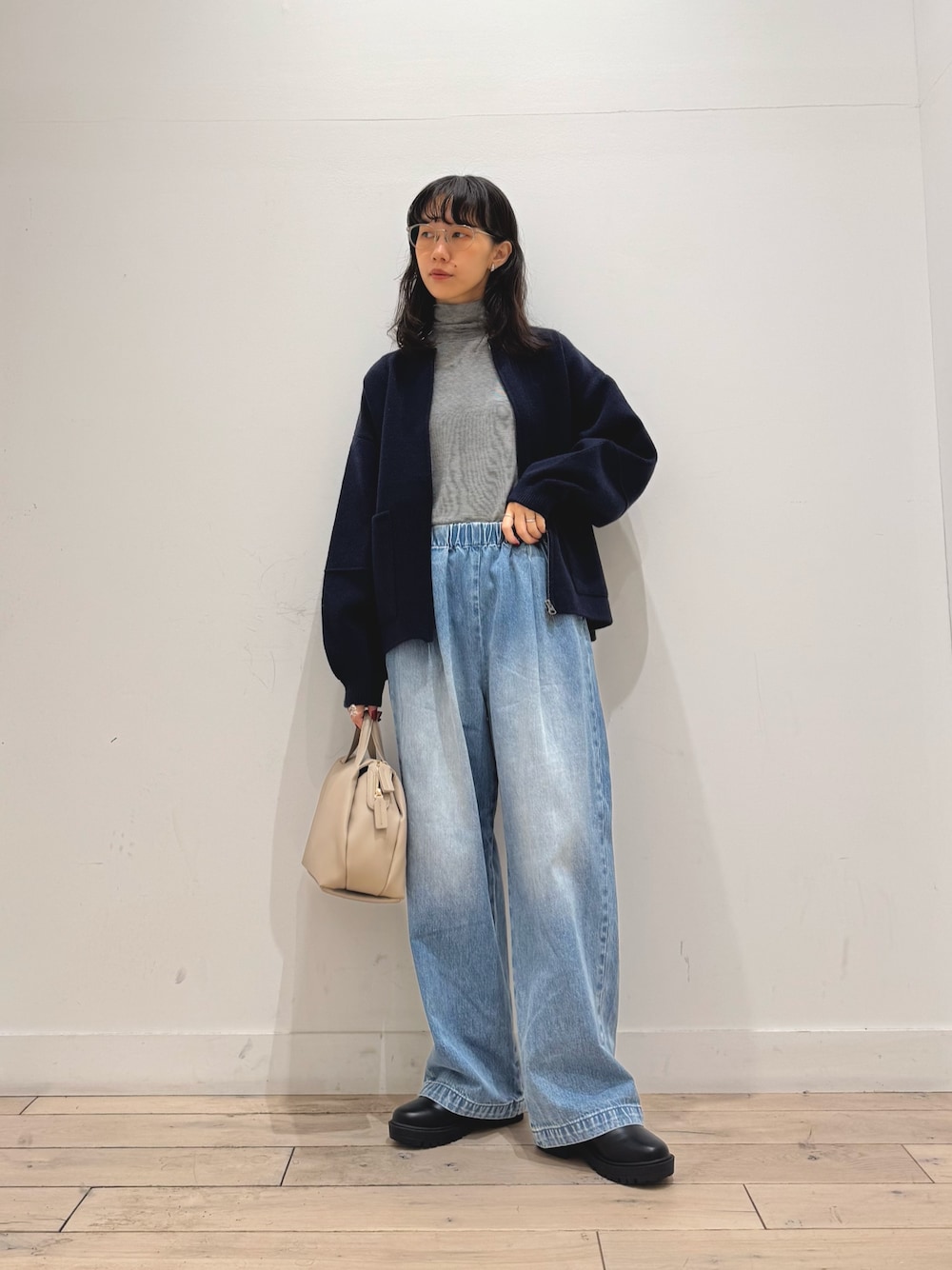 日々のコーデに頼もしくスタイリングに変化を与える1枚。ウエストのタックが立体感を生み、ヒップやもも周りに余裕がありながらもすっきりとしたシルエットに。野暮ったく見えない品のあるデニムです。シーズンを問わず気軽に着用できるのも嬉しいポイント。ニット・カットソー・ブラウスなどあらゆるトップスと好相性◎ワンピースとのレイヤードにも重宝します。両脇/ヒップにポケット付き。
