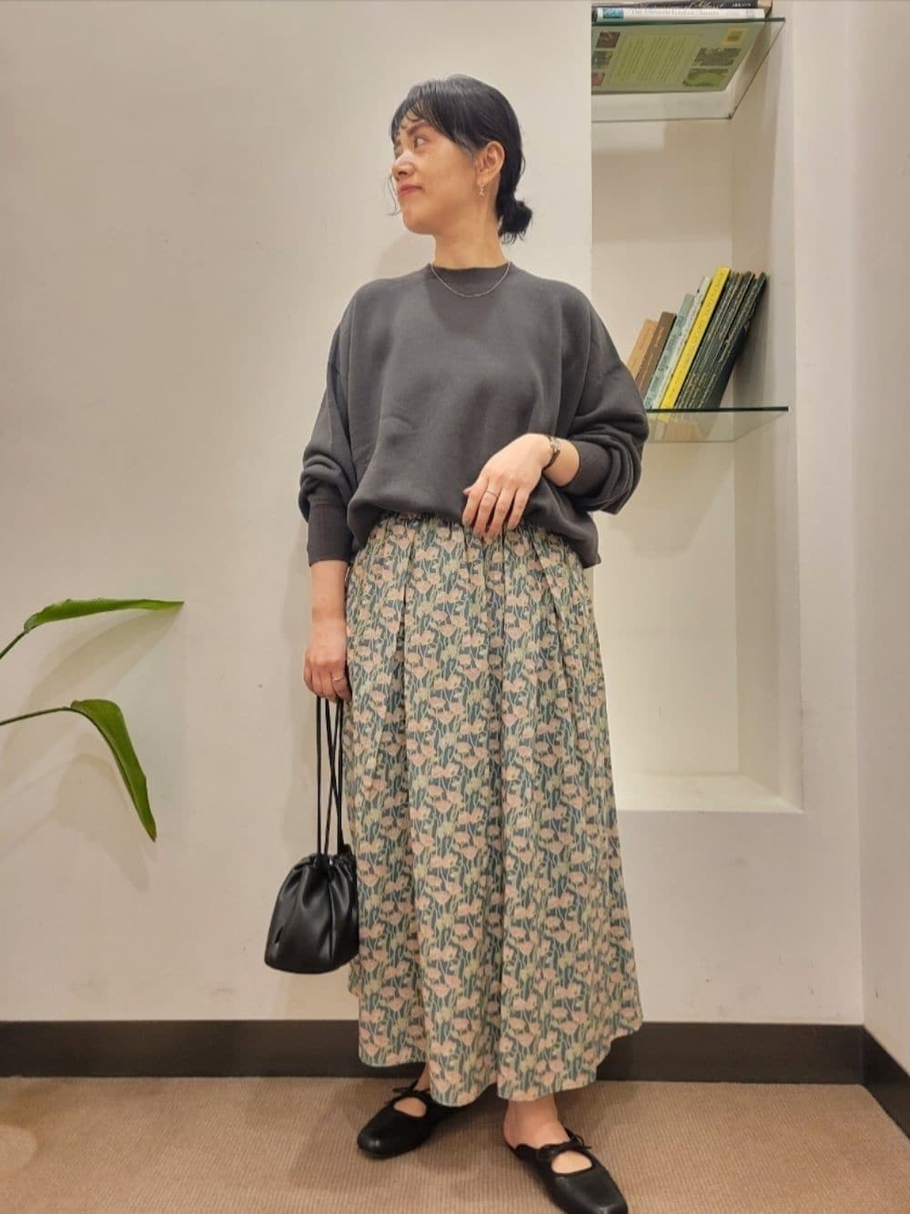 繊細なパターンが魅力的で穿きやすい総柄スカート。シンプルなトップスと合わせるだけで女性らしい着こなしを叶えるアイテムです。ウエストにタックが施され、すっきりとした甘すぎないフレアシルエット。ブラウスやカットソーはもちろんニットとの相性も抜群です。コーディネート次第でロングシーズン着回しが可能。裏地にはキュプラ100%を使用し、透け感を気にせず着ていただけます。ウエストはオールゴムのイージー仕様で着心地の良さもポイント。顔から離れたボトムスなら、気軽に色・柄物を取り入れやすくおすすめです。
