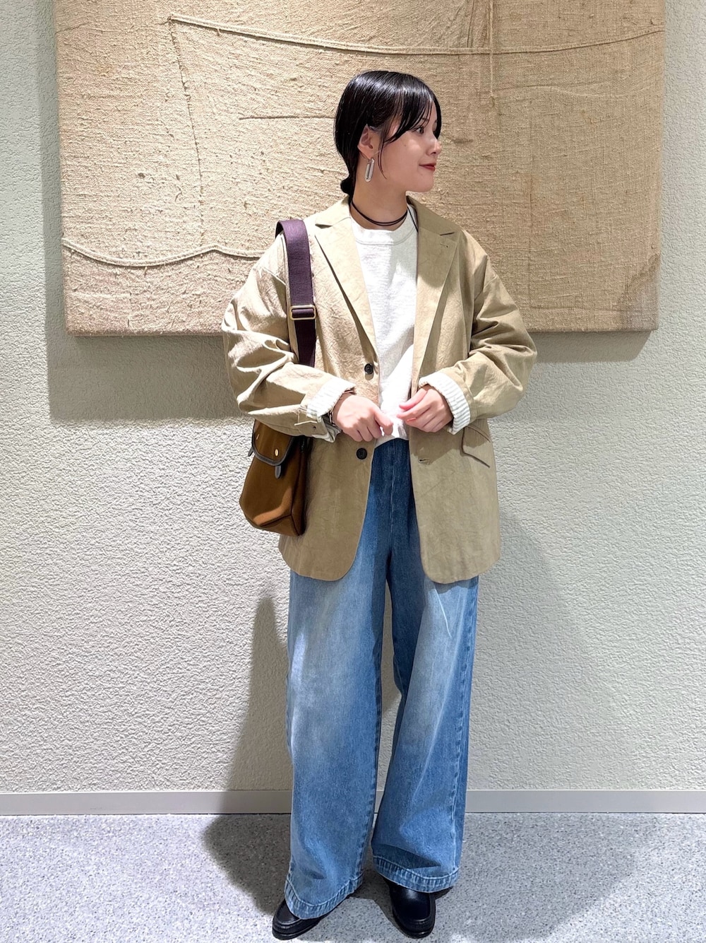 遠州染めならではの色味と風合いが雰囲気たっぷりの生地を使用しています。強風と日光を浴びた独特なムラや細かなしぼが特徴です。さっと羽織るだけで存在感のある着こなしに。袖はストライプの裏地でさり気なく存在感を高めたデザイン。パンツ・スカートはもちろんワンピースにも好相性。サロペットに合わせるスタイリングも程よい上品さがプラスされて素敵ですよ。かっちりし過ぎないので、オンオフ問わずコーディネートに大活躍。季節を問わない素材感は秋~冬手前と春先にも重宝します。同素材のパンツはシリーズアイテムからご覧ください。