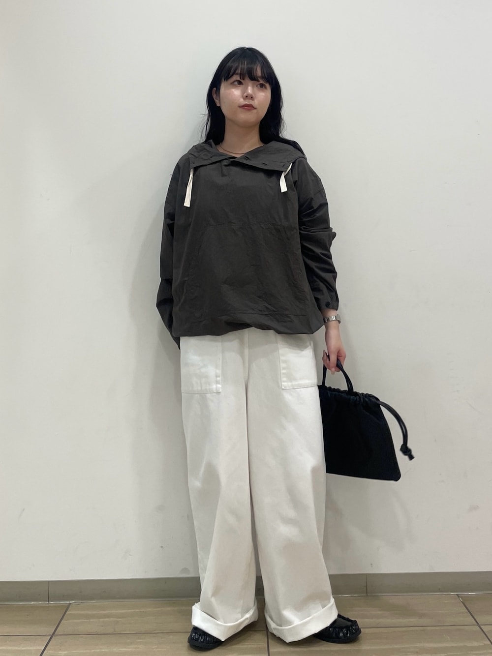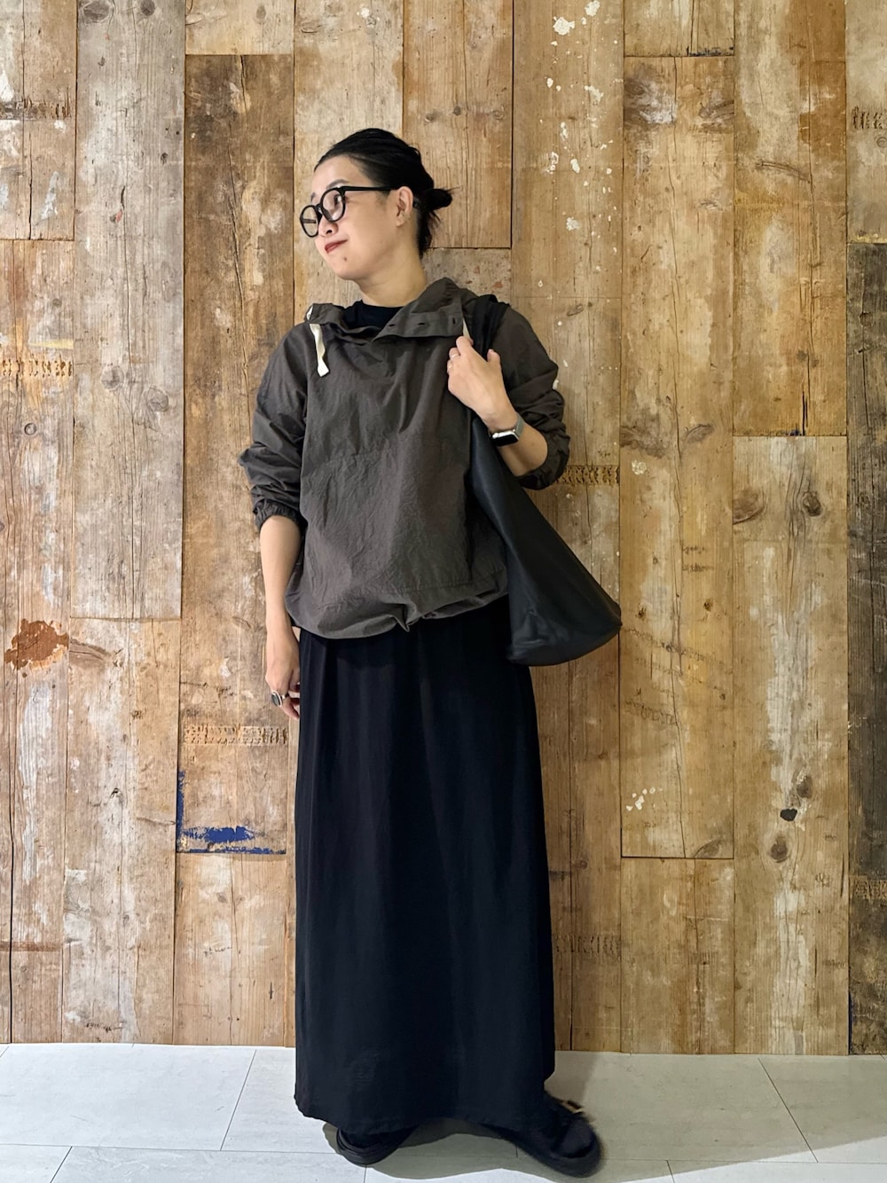大人っぽいナチュラルな雰囲気が魅力的な1枚。フロント部分がボタン開きになっていて着用すると程よいアクセントに。裾とフードまわりはドローコード仕様のためお好みでブラウジングが可能。ウエストポケットや絞り具合が変えられる袖口のタブもデザインポイントです。遠州染めならではの色味と風合い豊かな生地が存在感のある装いを後押し。強風と日光を浴びた独特なムラや細かなしぼが特長的な素材です。パンツ合わせはもちろん、スカートで甘さを添えるスタイリングもおすすめです。