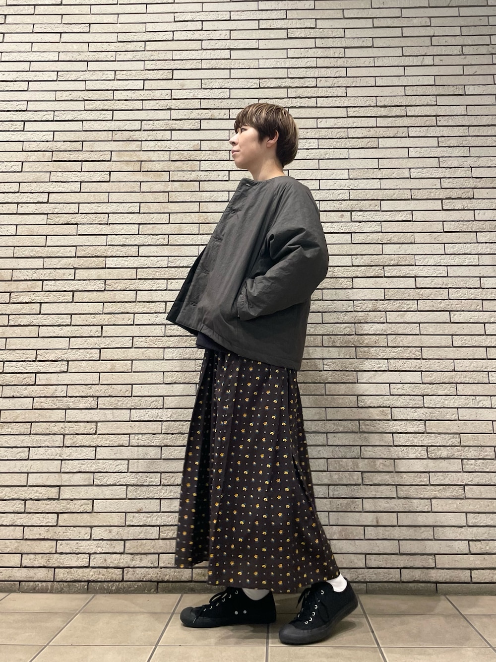 遠州染めの風合い豊かな生地を使用したショートコート。気軽に羽織ることができるノーカラー仕立てでご用意しました。コーディネートに抜けた雰囲気をもたらすシルエット。裾はほんのりと前後差がありシンプルながらもさり気ないデザインがポイントに。電車等で座っても気にならない丈感がデイリーに使いやすくおすすめです。中にニットも重ねることができ、気温に合わせてインナーで調節が可能。表は綿素材なので春先まで長く着まわしていただけます。同素材のコートはシリーズアイテムからご覧ください。