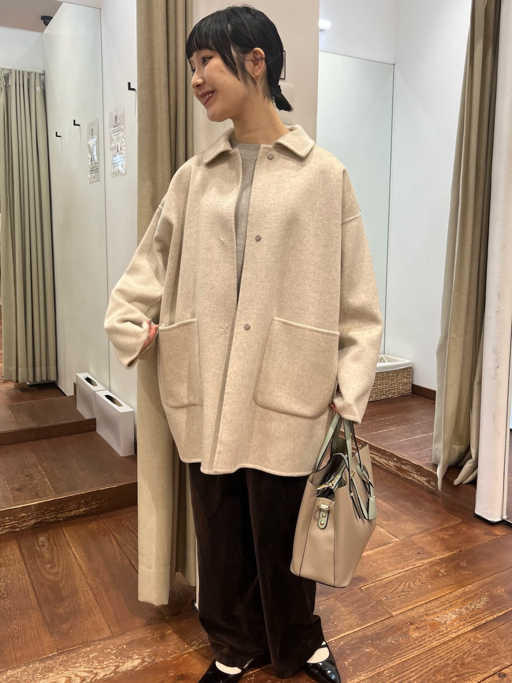 カジュアルからきれいめまで幅広い着こなしにフィットするショートコート。柔らかすぎず適度にハリ感のあるウール生地を使用しています。高品質な生地のため非常に肌触りがよく軽くてあたたかいのが特徴。カットソーからニットまで着用できるサイズ感なのでインナーで温度調節が可能。また裏地が無い一重仕立てを採用し秋冬のシーズンを通して重宝します。ヒップまわりを上手にカバーするショート丈が大人に嬉しいデザイン。スカートにもパンツにもバランス良く合わせていただけます。前立てに付いたスナップボタンは表から見えずミニマムな雰囲気。同素材で他のアイテムもご用意しているのでぜひご覧ください。